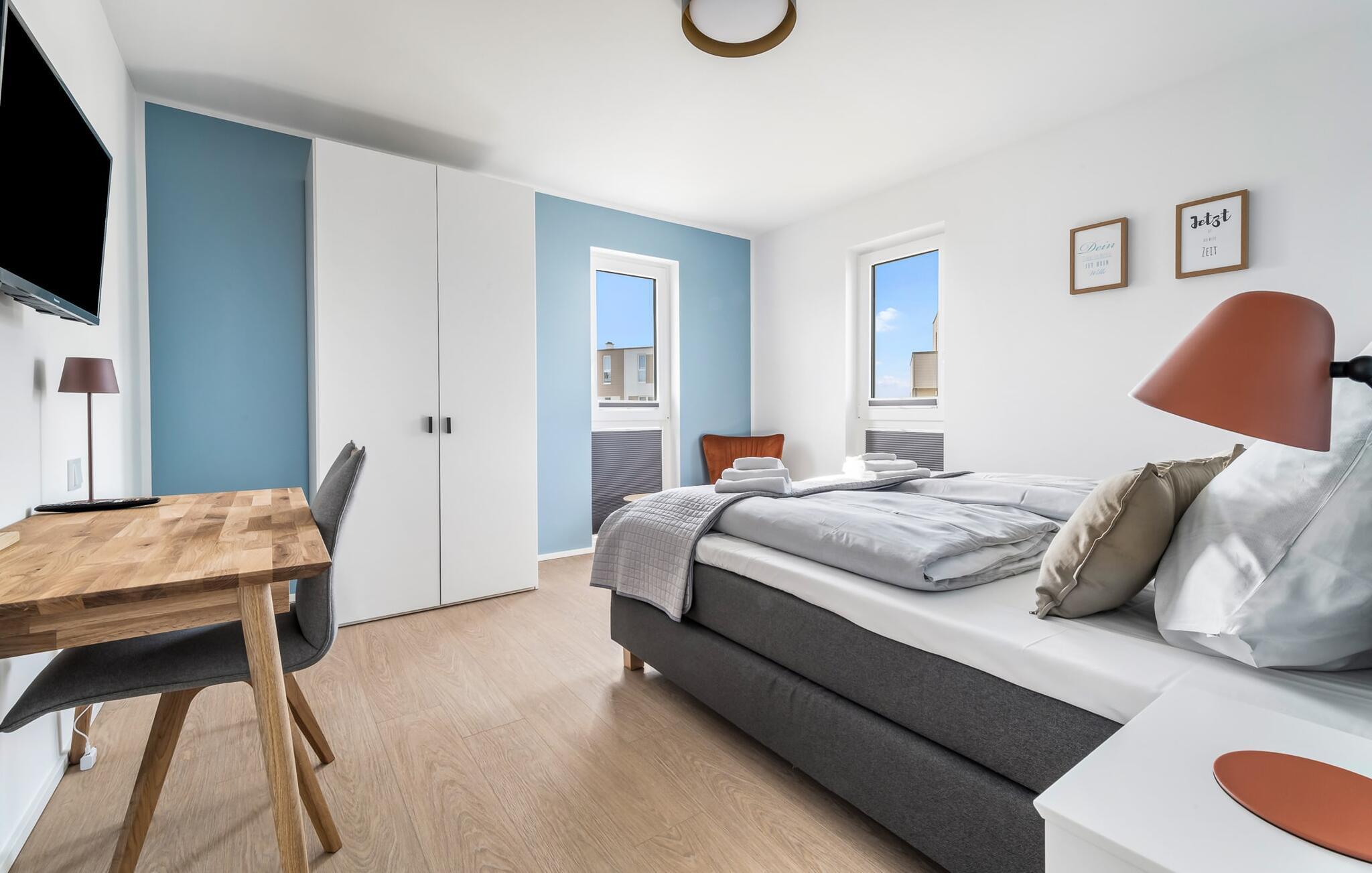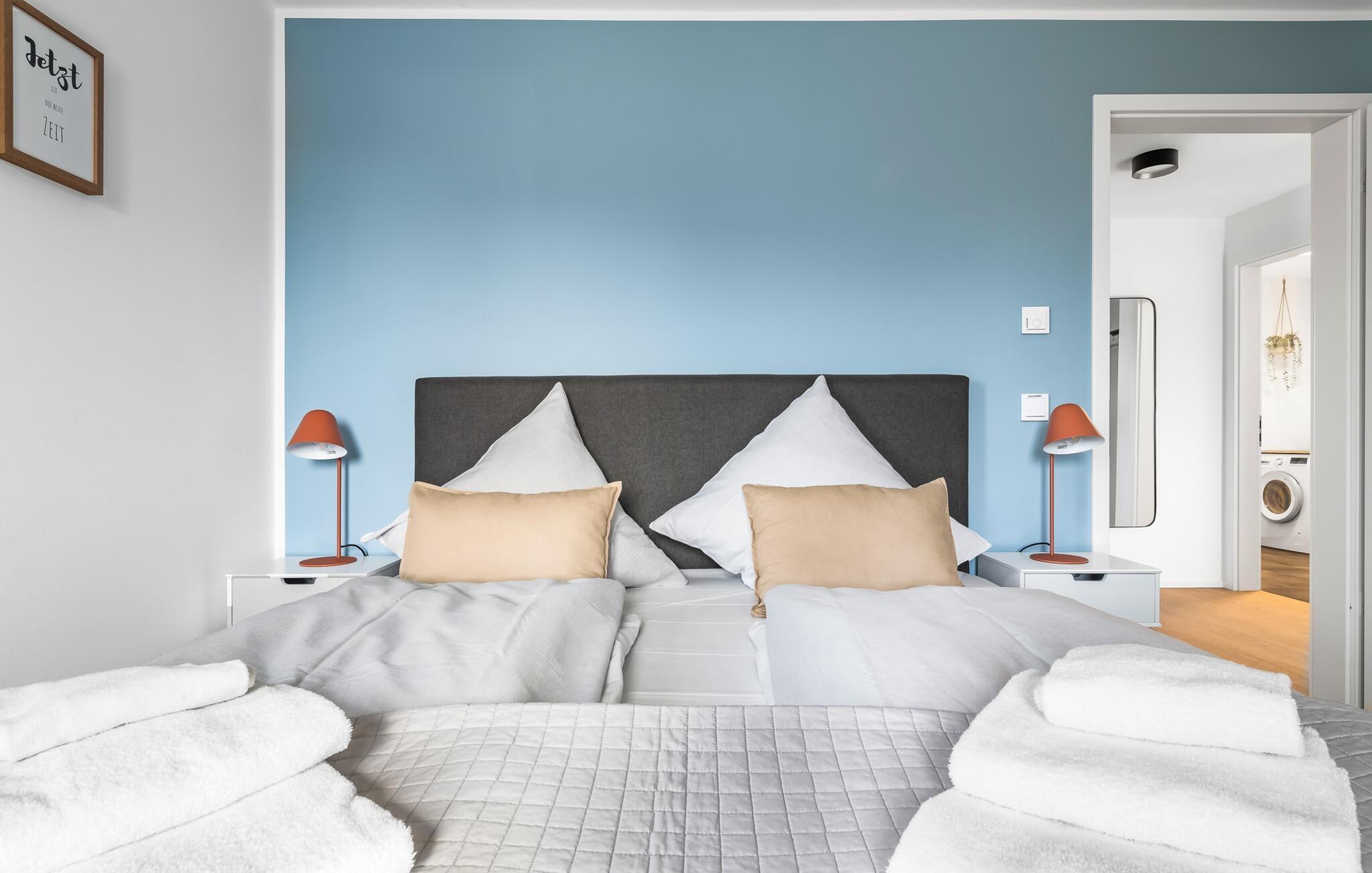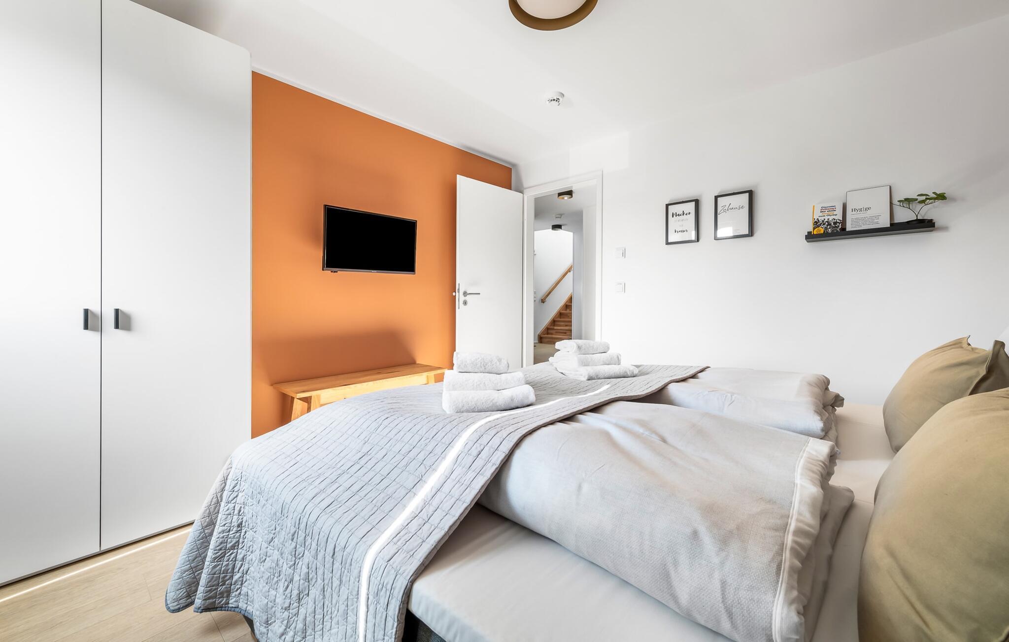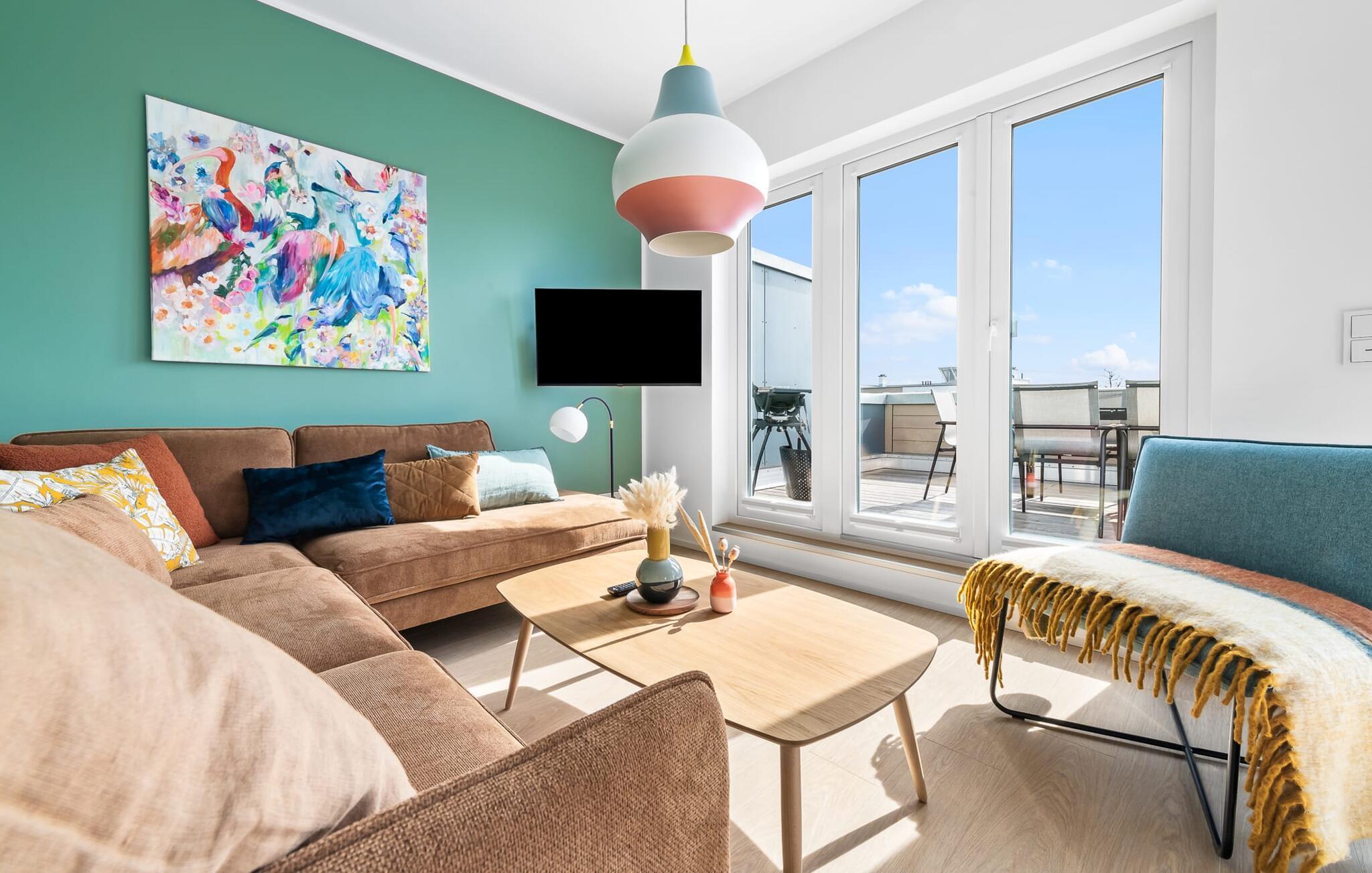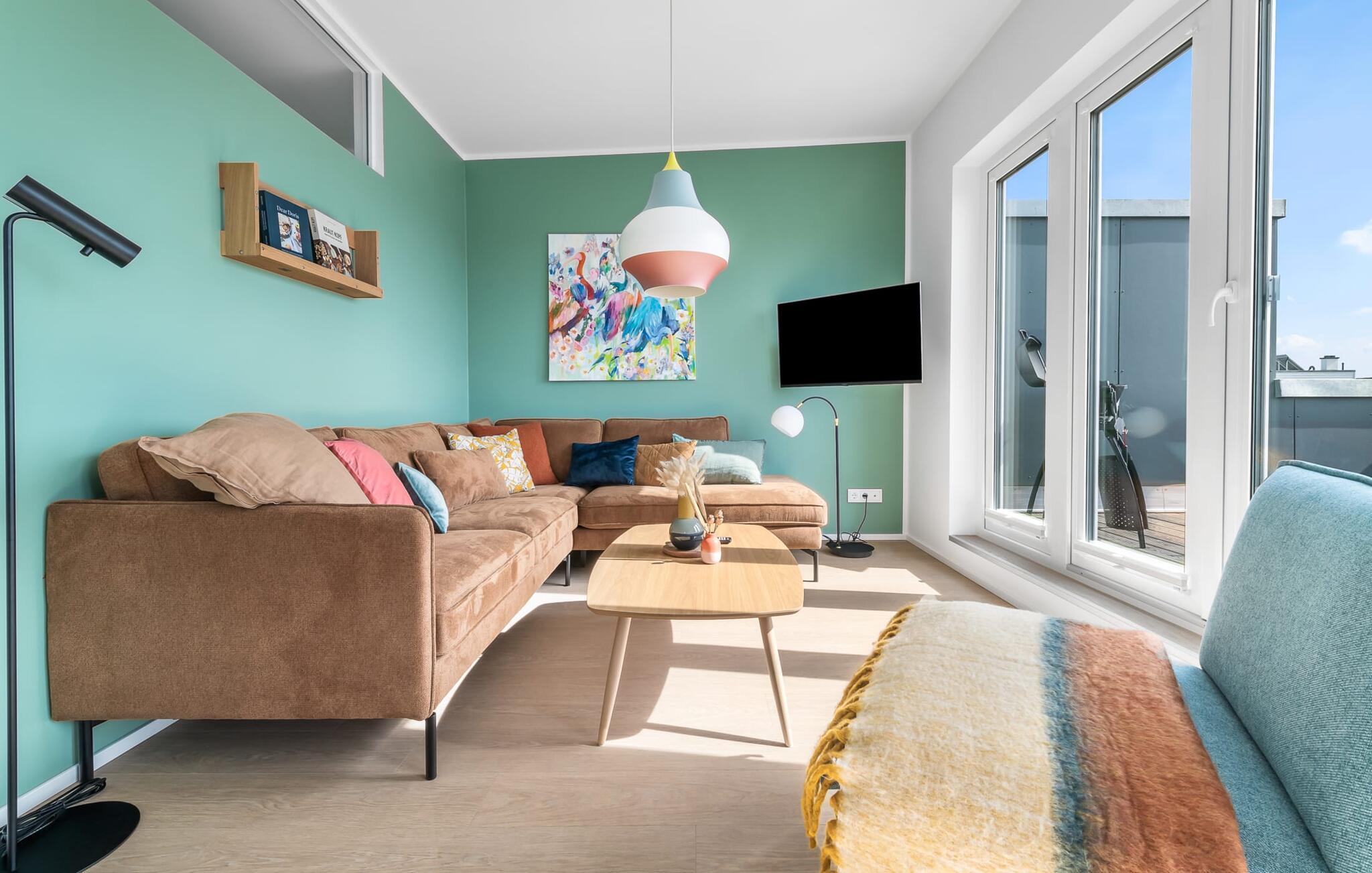 Die moderne Maisonettewohnung bietet mit drei Schlafzimmern und zwei Bädern über zwei Etagen Platz für bis zu 8 Personen.