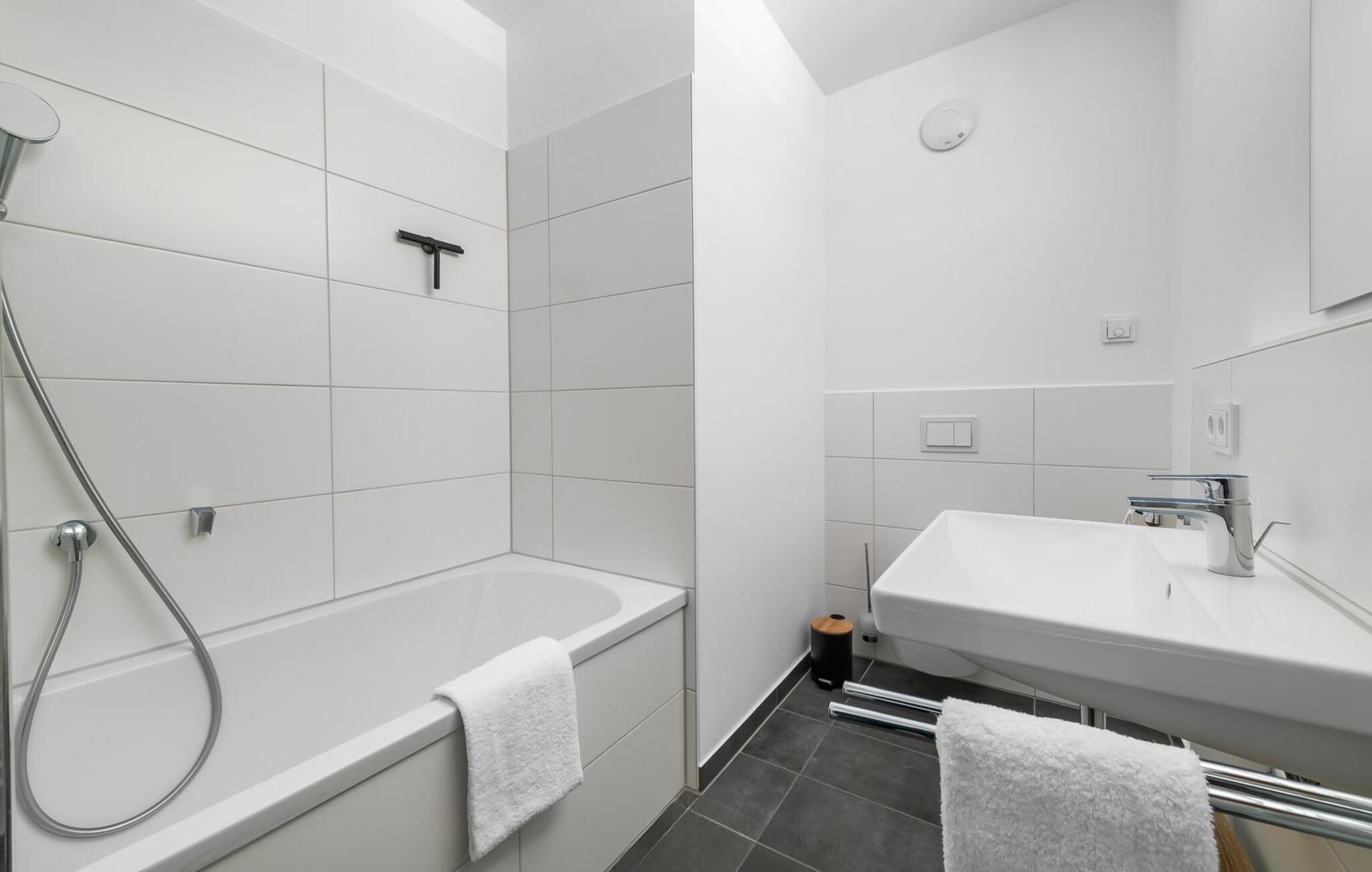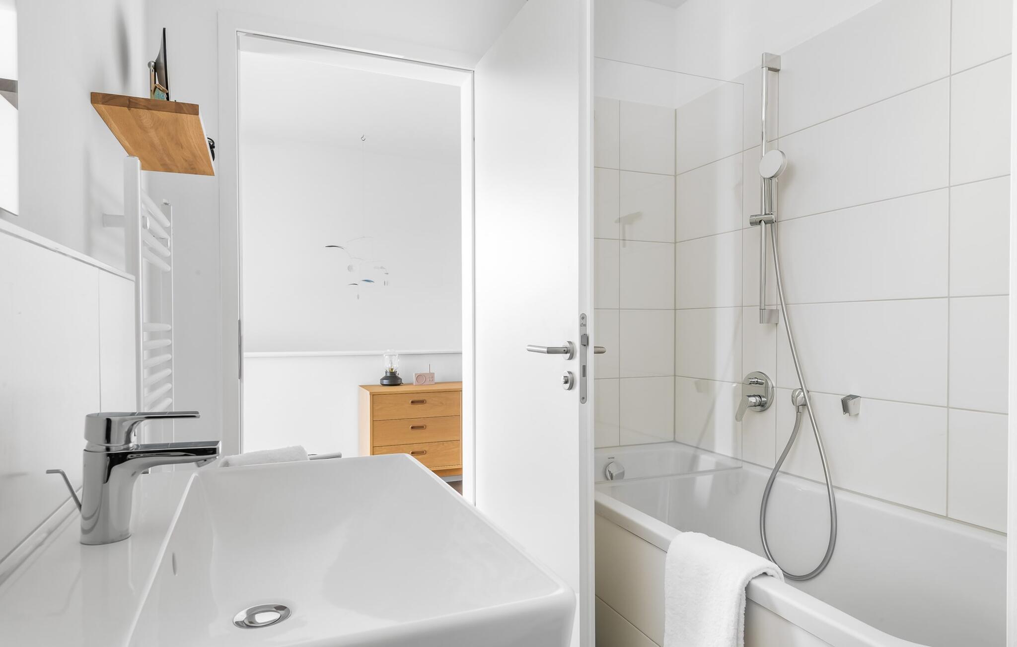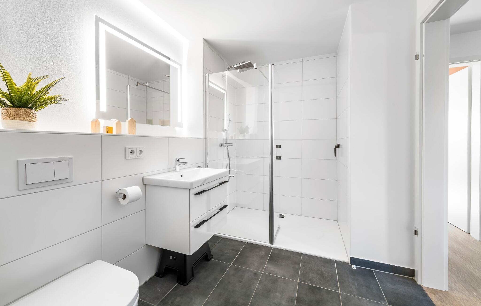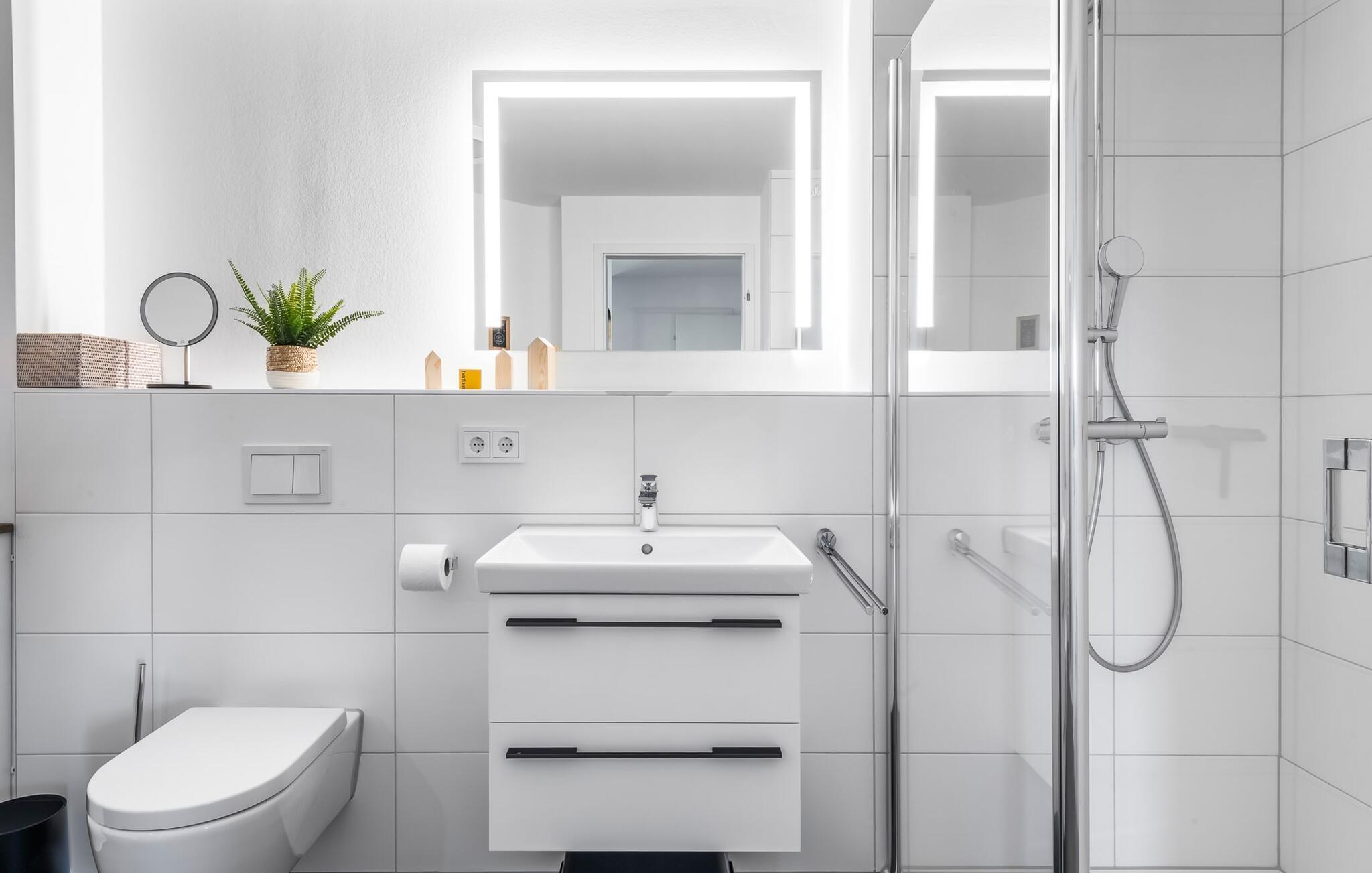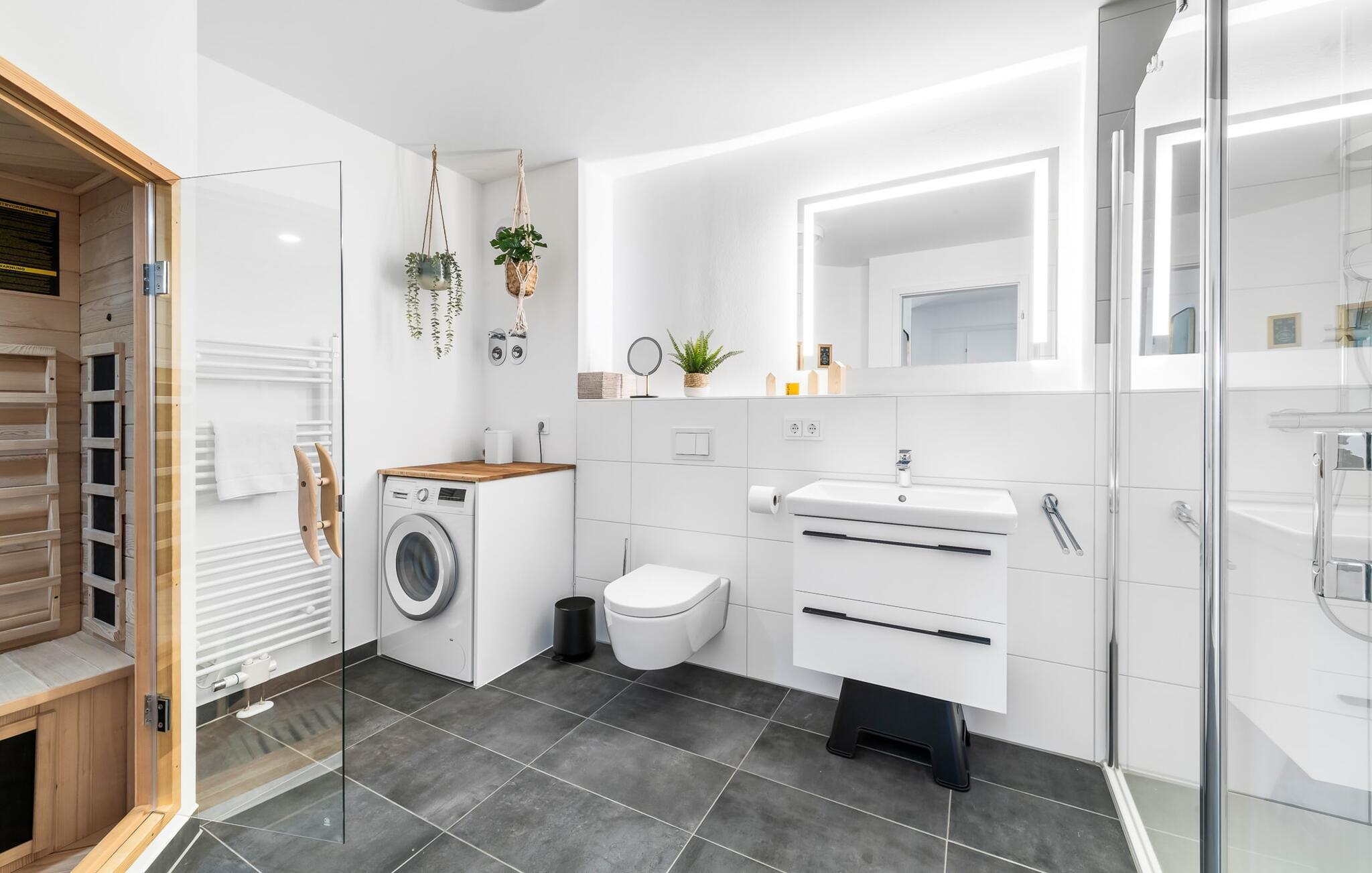 Ebenfalls auf dieser Etage befindet sich eure ganz eigene kleine Wellness Oase. Das Badezimmer mit bodengleicher Dusche und Infrarot-Sauna für den perfekten Abschluss eines Urlaubstages. Ein weiteres Bad mit Wanne befindet sich in der zweiten Etage der Wohnung.