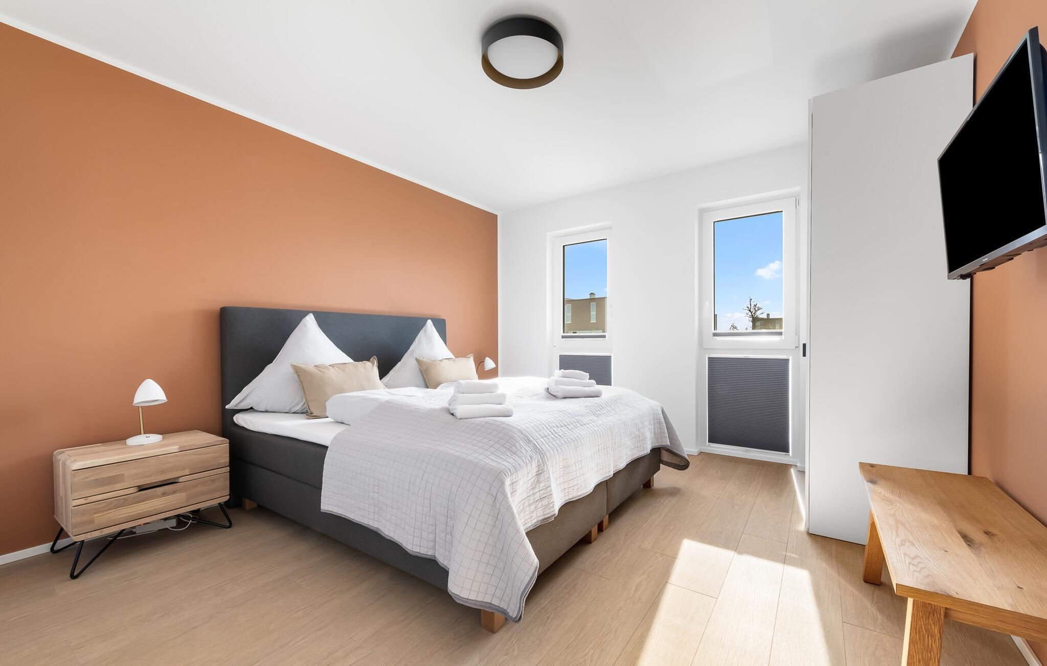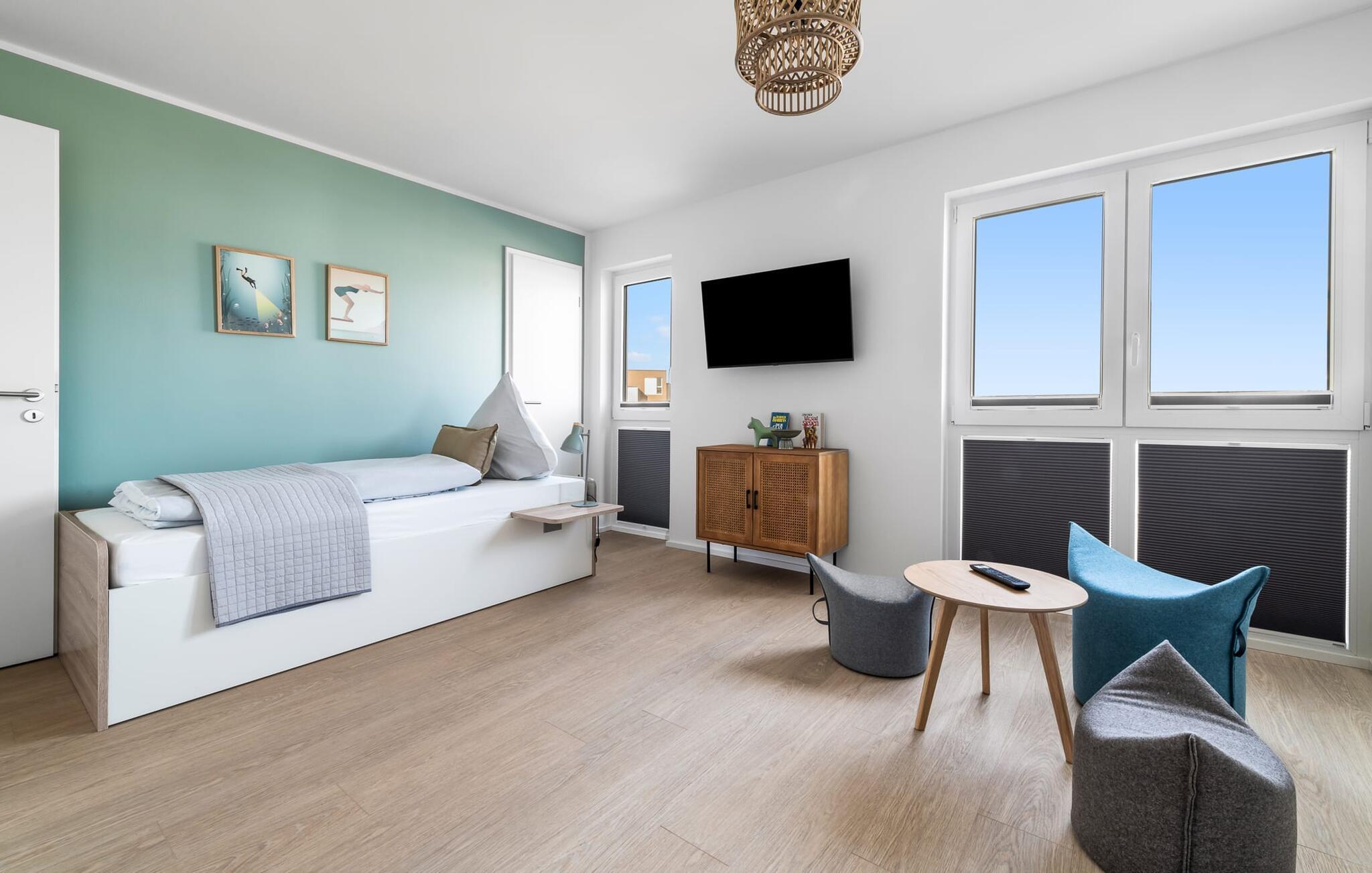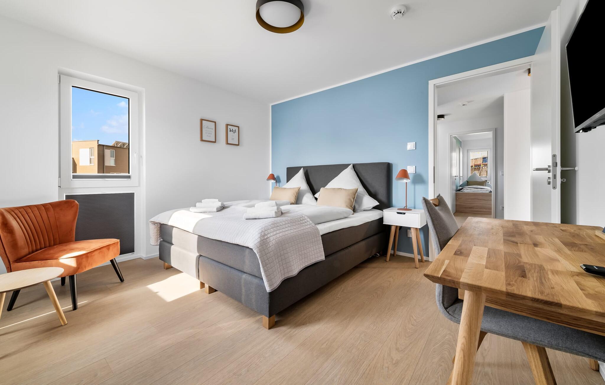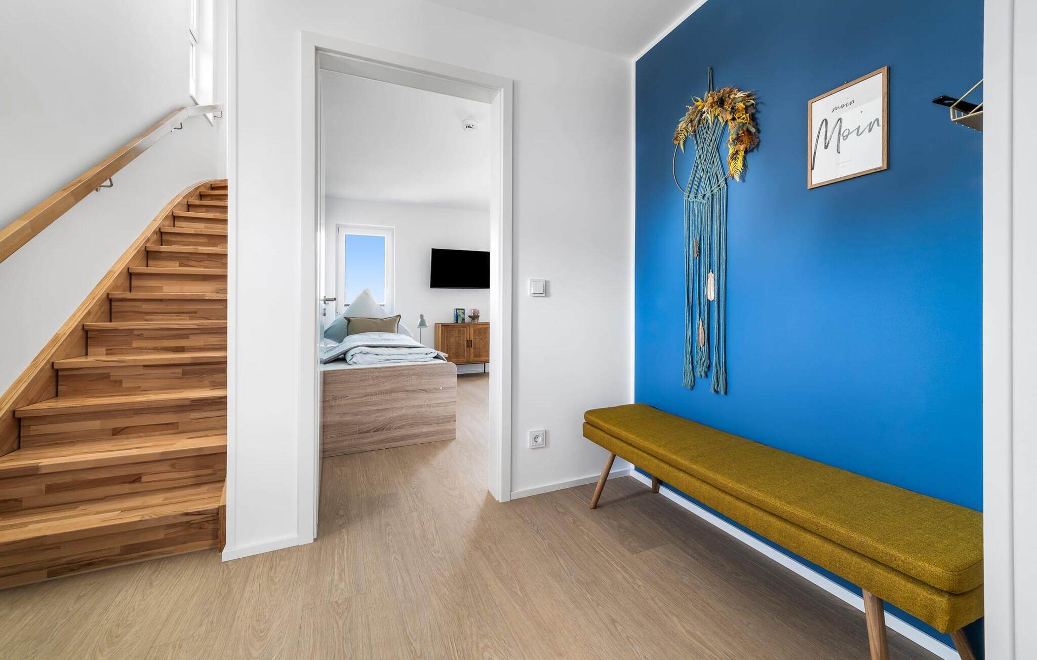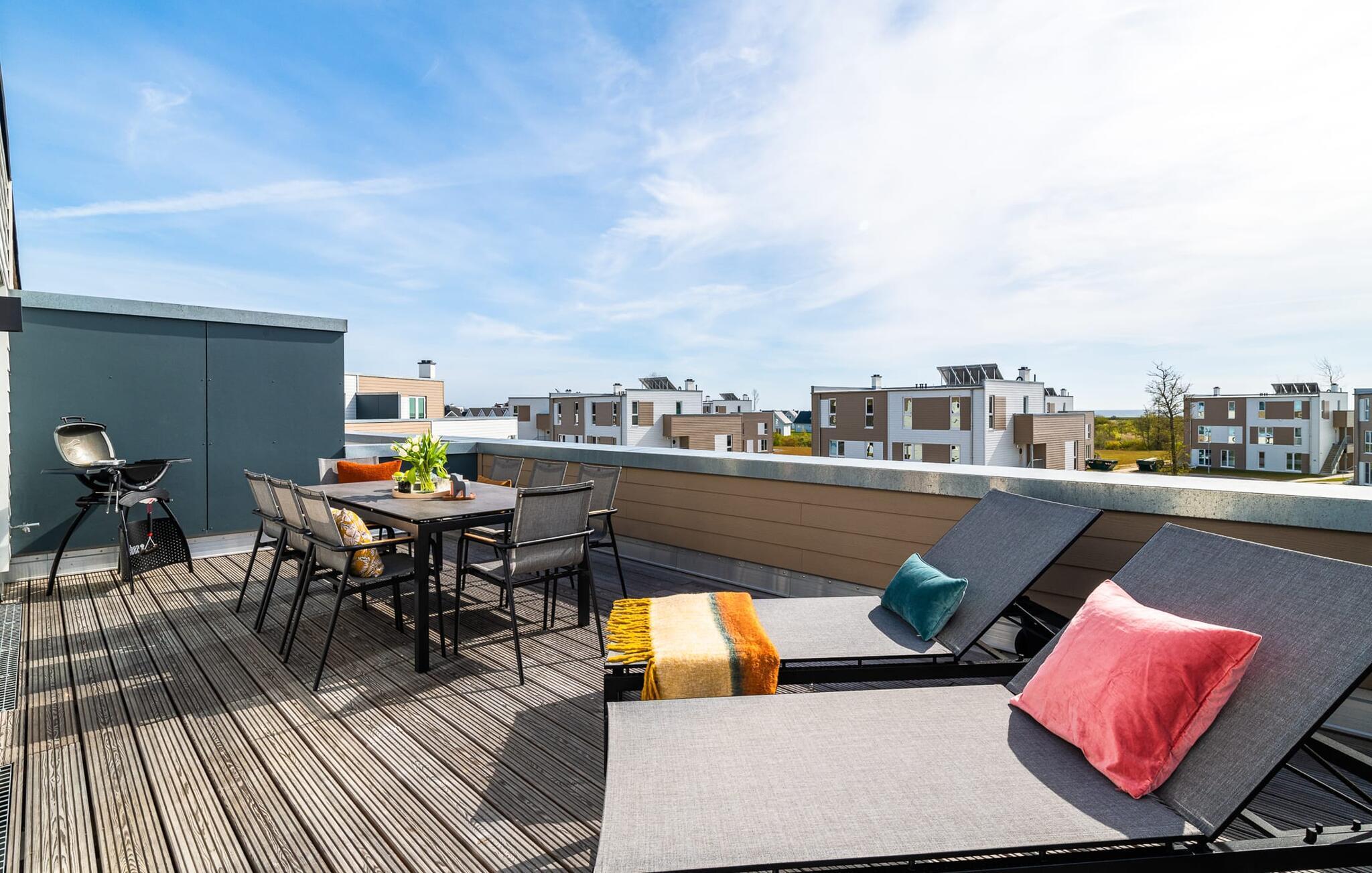 Moderne Ferienwohnung Vogelfrei im OstseeResort Olpenitz mit Meerblick, Sauna und Dachterrasse für erholsame Urlaubstage.