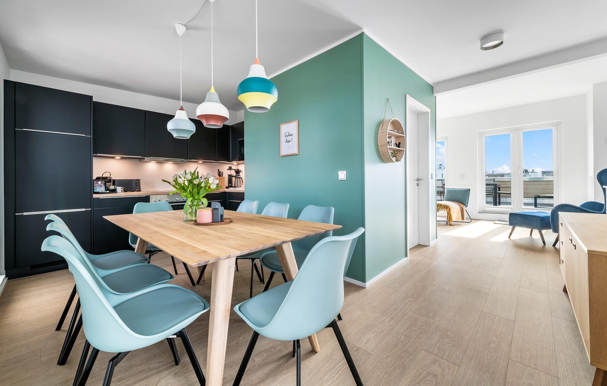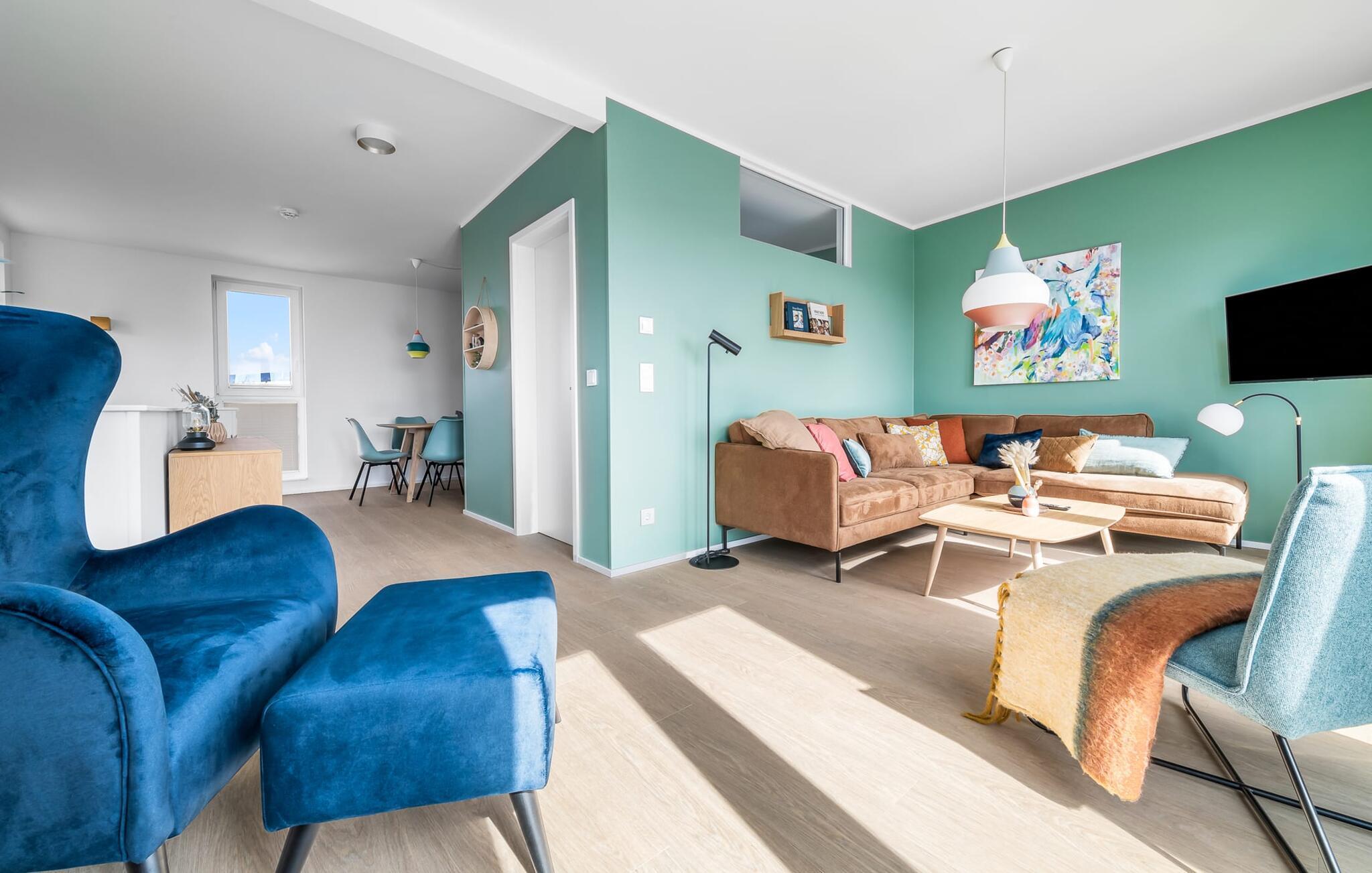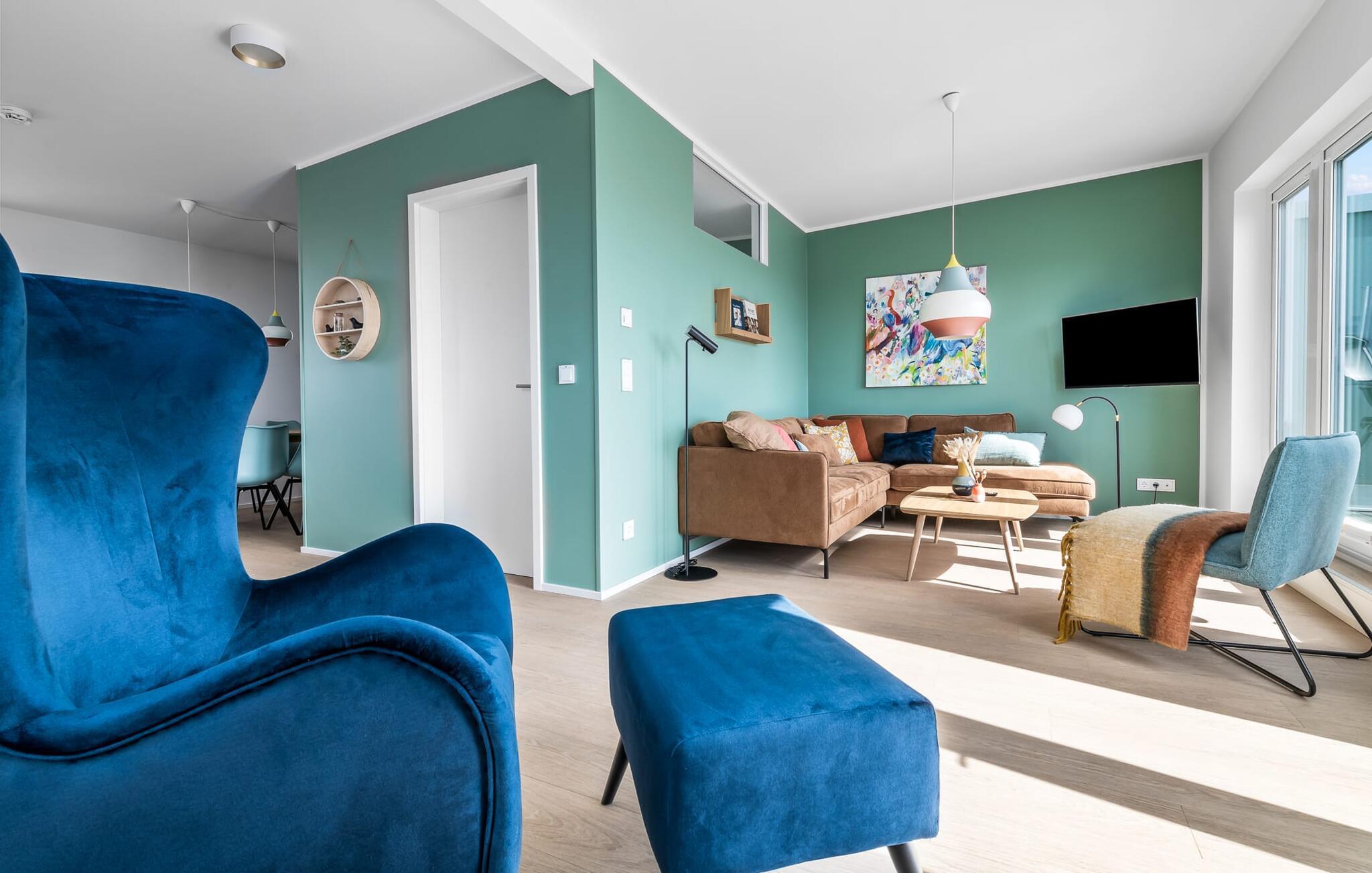 Die Ferienwohnung Vogelfrei begrüßt euch im angesagten skandinavischen Design und einem offenen Raumgefühl. Hier fühlt ihr euch tatsächlich so frei wie ein Vogel.