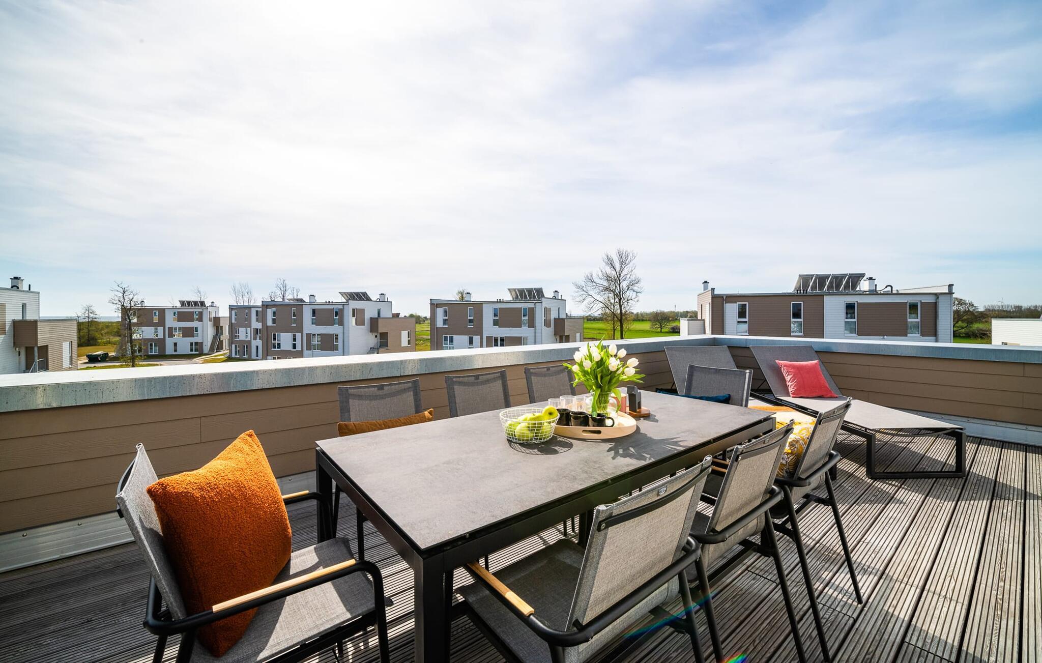 Unser Lieblingsplatz: Begrüßt die ersten Sonnenstrahlen des Tages mit einem duftenden Kaffee auf der Dachterrasse mit Blick gen Ostsee…