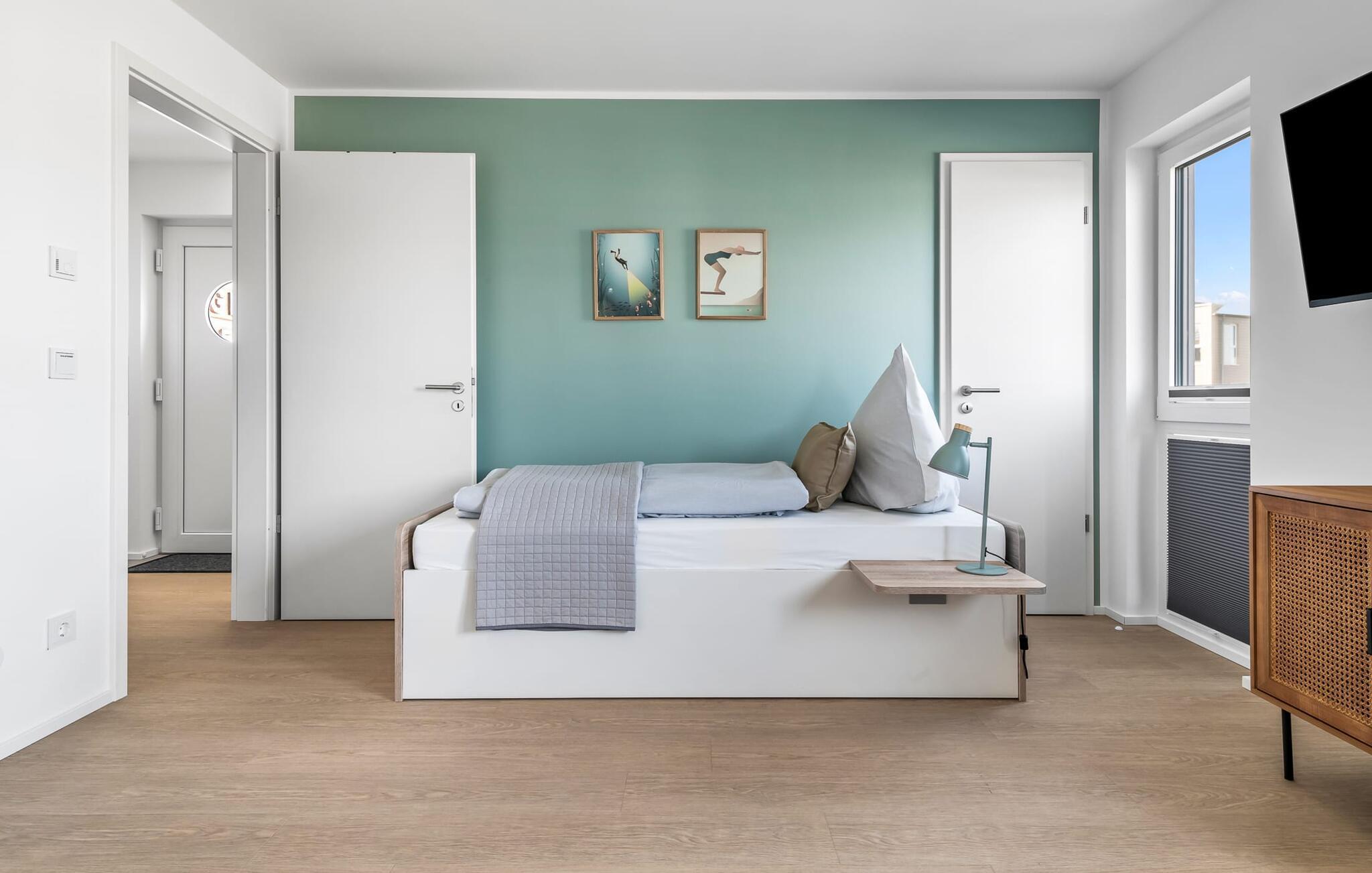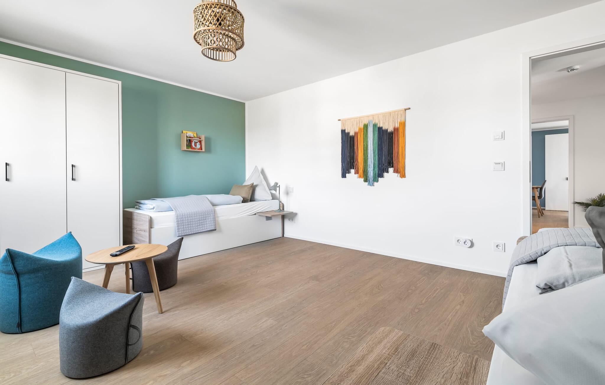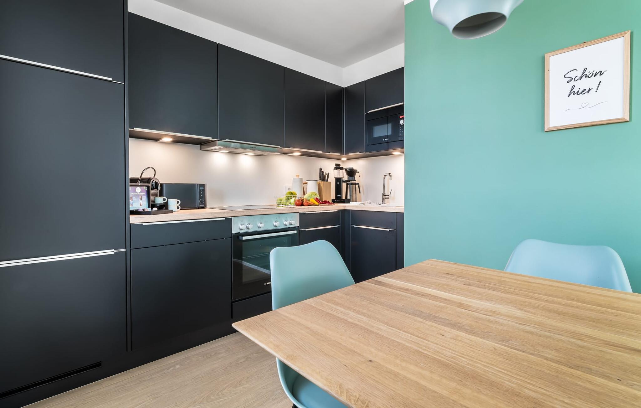 Hier befindet sich auch der Wohn- und Essbereich und versprüht mit seiner hellen und modernen Einrichtung Behaglichkeit. Ob ein gemütlicher Fernsehabend zu Zweit auf dem Sofa oder ein gemeinsamer Spieleabend, hier könnt ihr eure Zeit gestalten, wie ihr Lust habt.