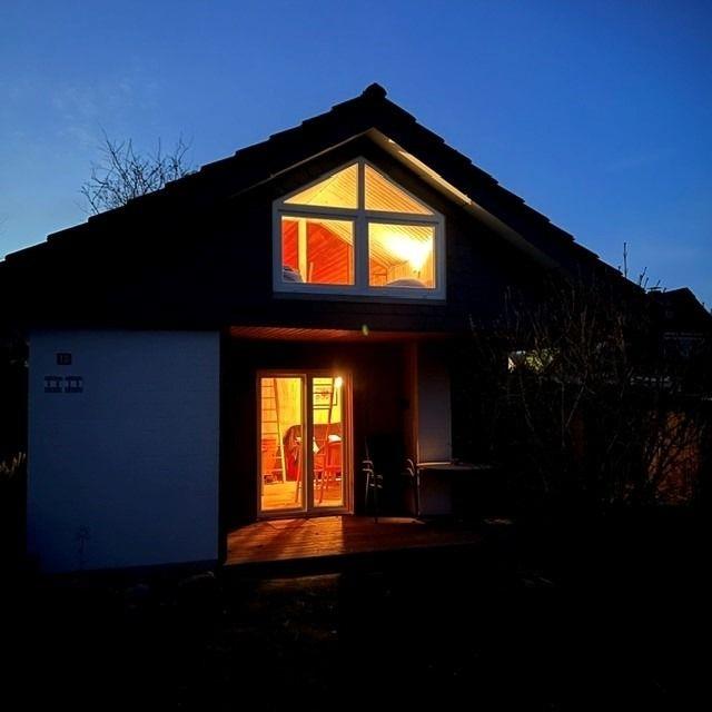 Charmantes Ferienhaus Lütt Hüs in Waabs-Langholz, 400 m von Ostsee und Strand, mit Garten, Kaminofen und Meerblick.