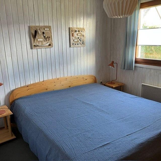 Ein separates Schlafzimmer, ebenfalls mit Doppelbett und zusätzlich einem Schrank, sowie ein Kinderzimmer mit Etagenbett, Schrank und Spielmaterialien erwarten Sie im Erdgeschoss. Die Küchenzeile ist mit allen ausgestattet, was man für die Zubereitung von leckeren Mahlzeiten benötigt. Auch ein Geschirrspüler und ein Kühlschrank mit Gefrierfach finden sich hier. Das Bad verfügt über Waschbecken, WC und eine Eckdusche. Eine Glasfaserverbindung sorgt für schnelles Internet.