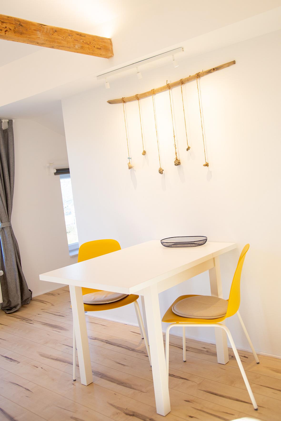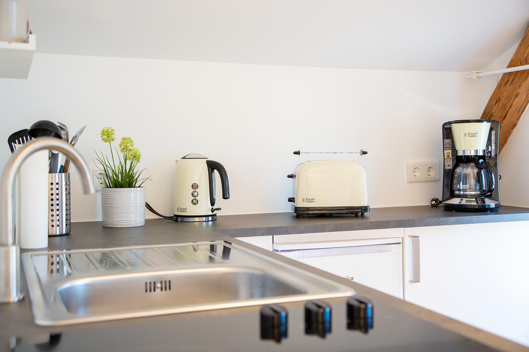 Diese bietet einen Schlafbereich mit Doppelbett (1 Matratze 140 x 200 cm), einen Wohnbereich mit Fernseher und Sofa, eine offene Küche mit Herd, Kühlschrank, Spülmaschine und allem notwendigen Küchenzubehör, einen Essbereich sowie ein geräumiges Duschbad. Für den entspannten Urlaub können Bettwäsche und Handtücher dazu gebucht werden. Zudem stehen Ihnen ein Parkplatz vor dem Haus und eine kleine Terrasse im Garten zur Verfügung.