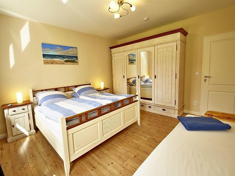 In der großen Wohnung verfügen Sie außerdem über 3 Schlafzimmer (1x Doppelbett 180x200 cm mit Zustellbett und 4-türigem Kleiderschrank, 1x Doppelbett 160x200 cm, 1x zwei Einzelbetten mit Kleiderschrank), ein Bad mit Badewanne und ein Duschbad.