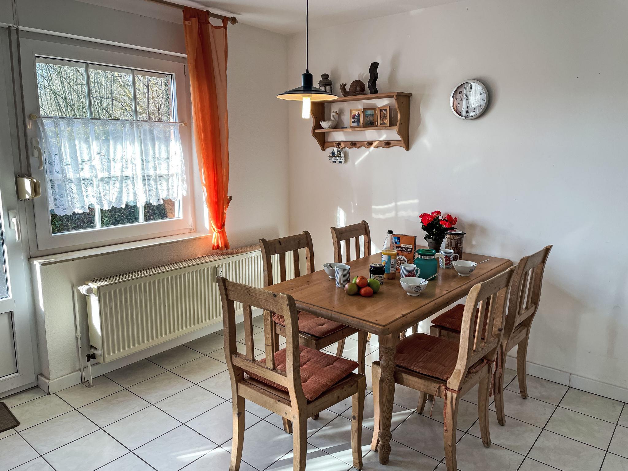 "Wohnung Nr.9 im Dörp", 3-Zimmer-Wohnung 70 m2, im Erdgeschoss. Schön und modern eingerichtet: Wohn-/Schlafzimmer mit 1 Diwanbett, Esstisch, Sat-TV, Radio und CD. Ausgang zur Terrasse. 1 Doppelzimmer. 1 Zimmer mit 1 franz. Bett. Offene Küche (Backofen, Geschirrspüler, 4 Glaskeramikplatten, Toaster, Wasserkocher, Mikrowelle, elektrische Kaffeemaschine). Dusche/WC. G-Heizung. Terrasse. Terrassenmöbel, Abstellkammer. Zur Verfügung: Waschmaschine, Kinderhochstuhl, Babybett. Internet (WLAN, gratis). Parkplatz (1 Auto). Bitte beachten: Nichtraucher-Unterkunft. Rauchmelder. DE05988