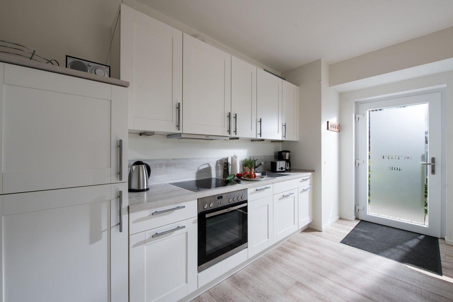 Offene, hochwertig ausgestattete Küche auf der ersten Ebene.