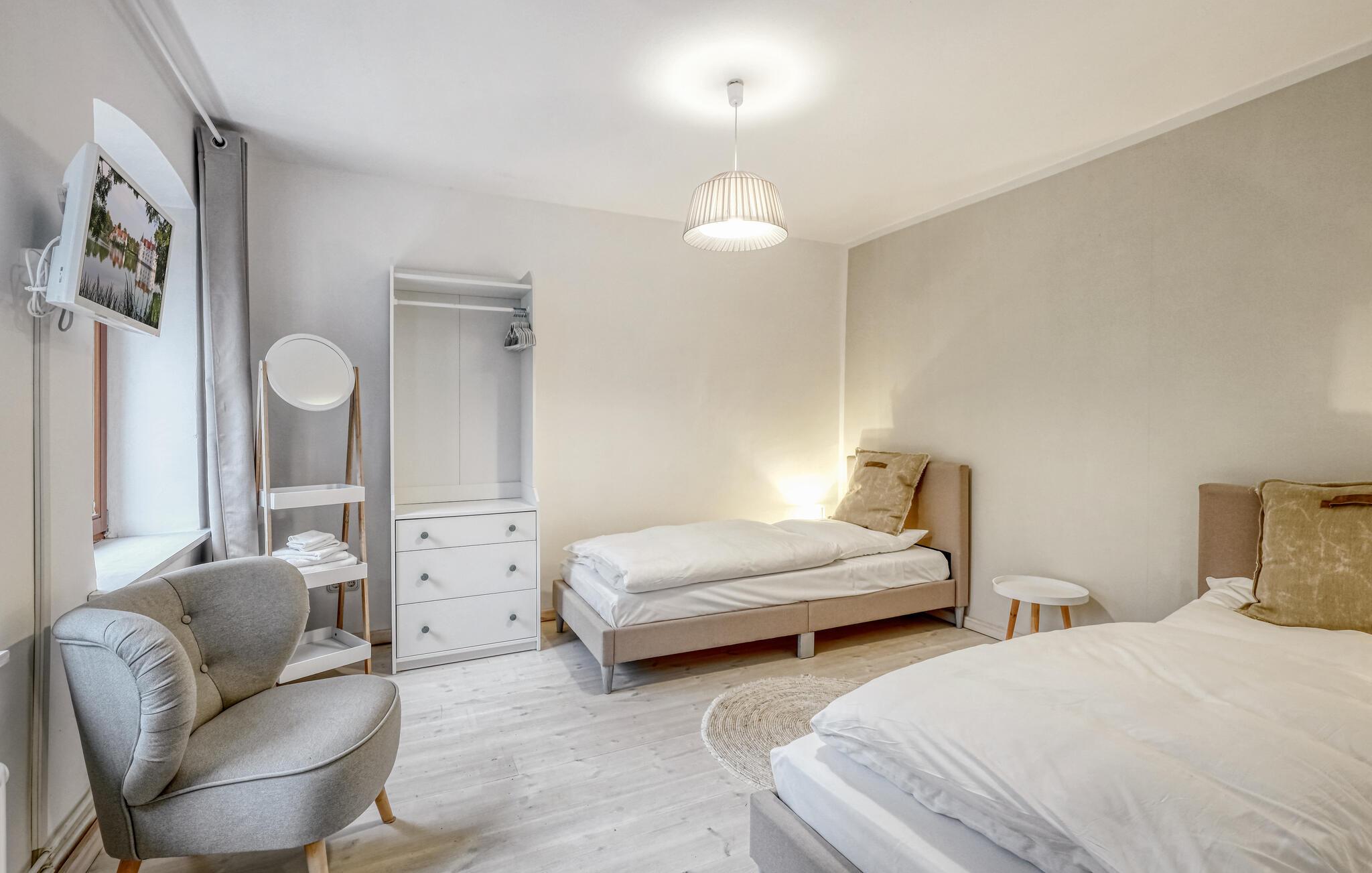 Sie wohnen außerhalb des städtisch und touristisch pulsierenden Trubels, aber nahe genug, um fußläufig oder mit dem Rad schnell mittendrin zu sein. Spazieren Sie im benachbarten Friedewald, der geführte oder freie Rundgänge bietet und Sie täglich etwas Neues entdecken lässt. Nehmen Sie auch Ihre Fahrräder aus dem abschließbaren Raum und erkunden auf einem gut ausgebauten Radwegenetz die ursprünglich erhaltene kleinteilig, landwirtschaftlich geprägte Umgebung und entdecken dabei zahlreiche Kleinode am und ums Wasser, ob in der Landschaft oder an der nicht weit entfernten feinsandigen Ostseeküste.