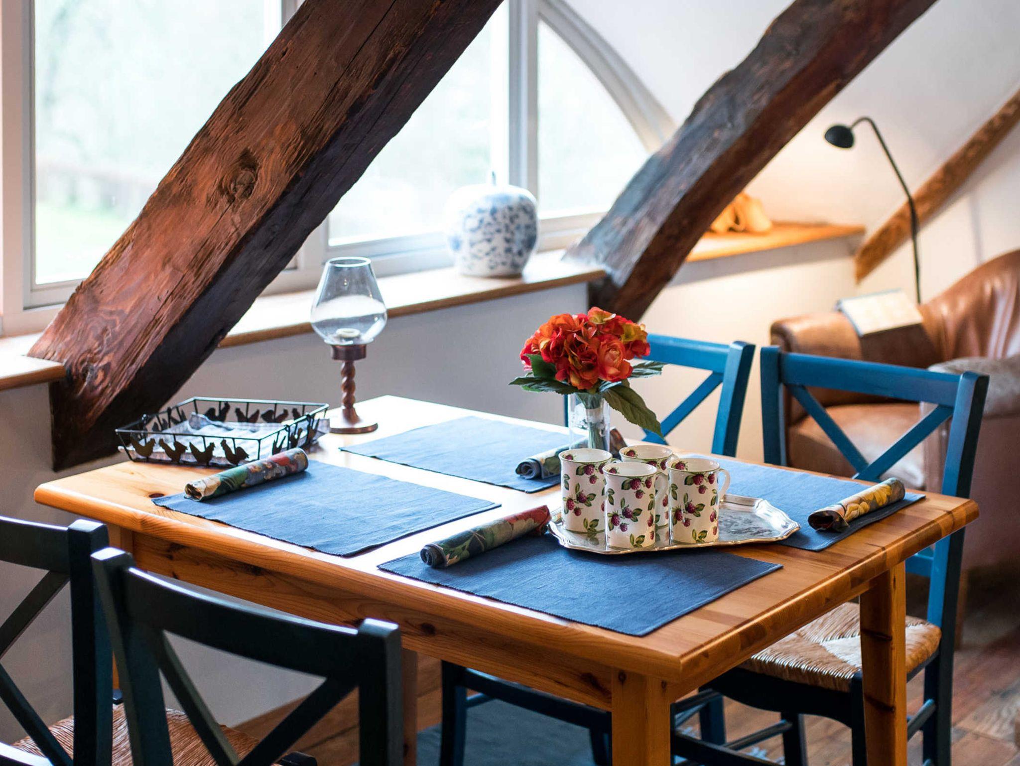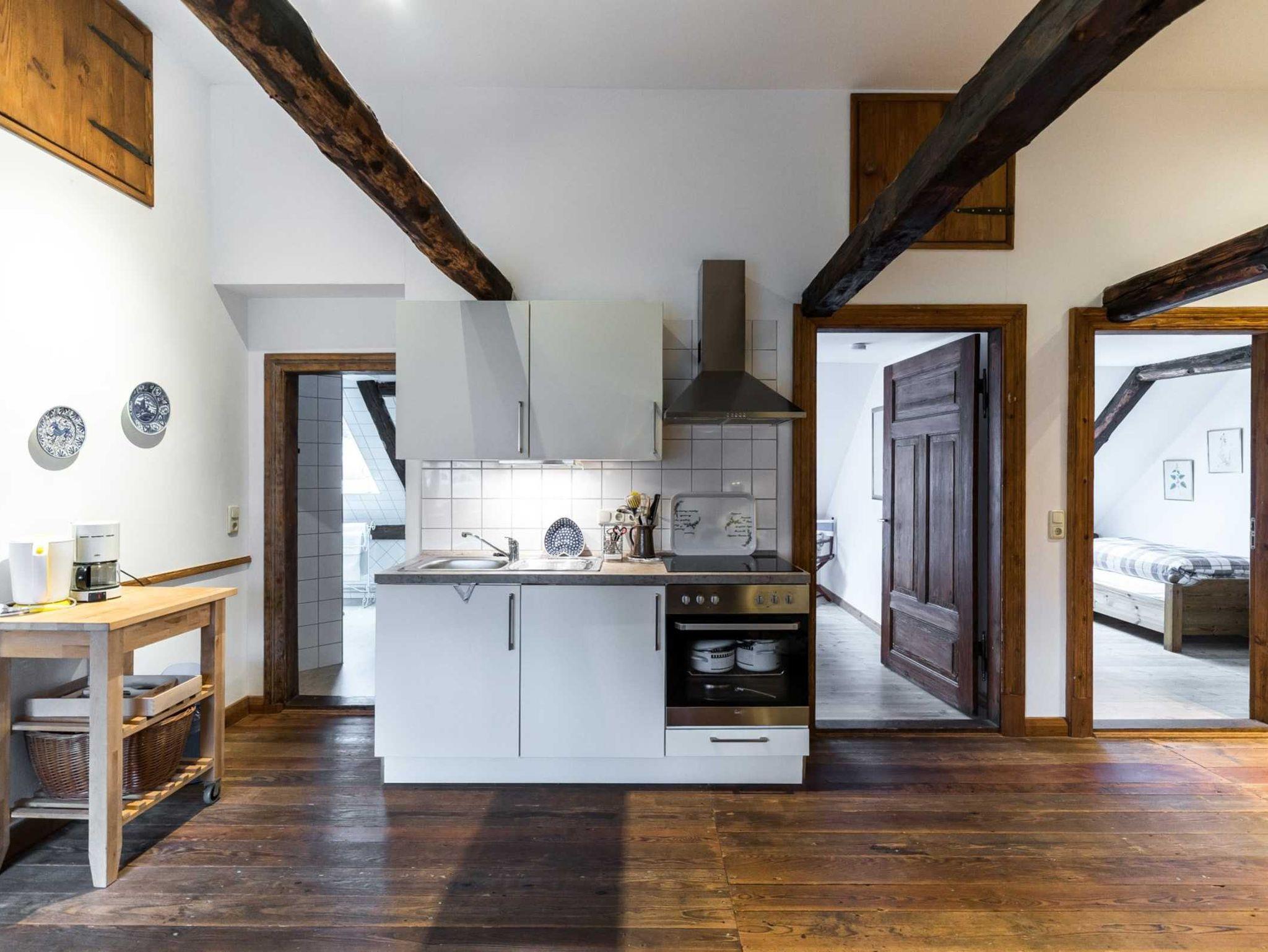 Gemütliche Wohnung Zofenkammer auf Schloss Lühburg mit Kaminofen und idyllischem Schlossparkblick.