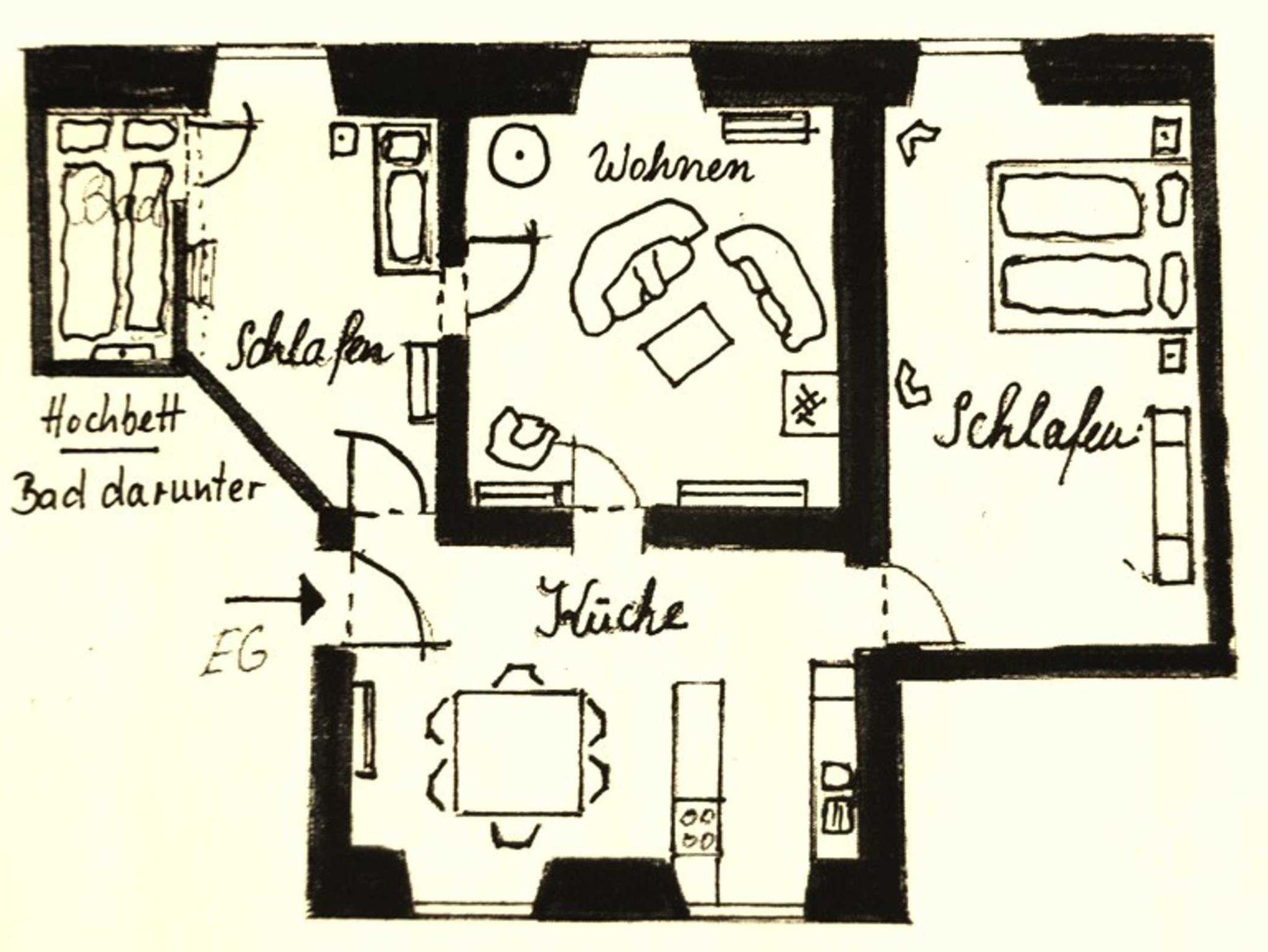 Die Hochparterrewohnung (74 qm) befindet sich im linken Kavaliersflügel und eignet sich für 4 bis 5 Personen