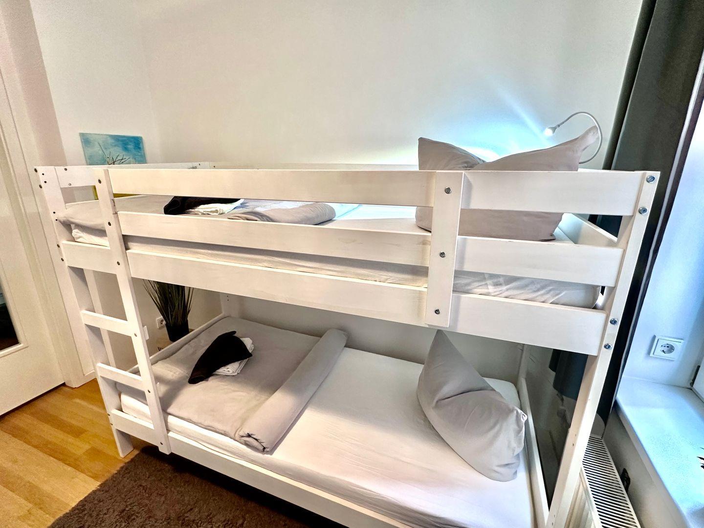 Im unteren Bereich finden Sie das Wohnzimmer mit einem 55 Zoll Smart TV. Hier können Sie auch Filme über diverse Streaming Dienste genießen. Zusätzlich steht hier ein gemütliches Boxspringbett für zwei Personen. Für unsere kleinsten ist ein Hochstuhl sowie ein Reisebett verfügbar.