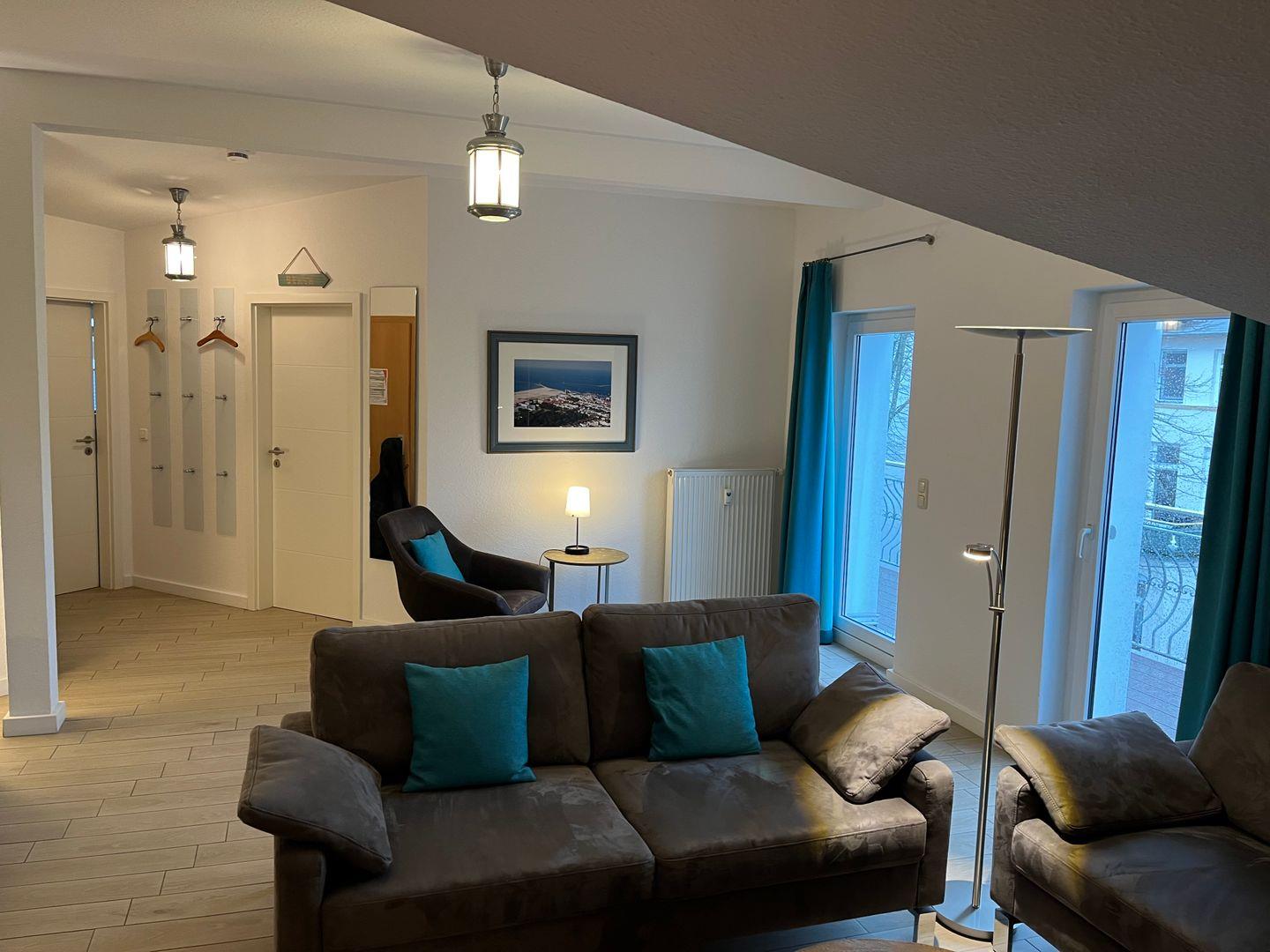 Moderne Ferienwohnung mit Balkon, WLAN und voll ausgestatteter Küche in Warnemünde, nur 350 m vom Strand entfernt.