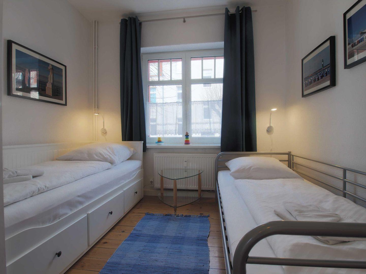 Die Ferienwohnung „Fewo Heimathafen“ bietet auf 62 m² Platz für bis zu 4 Personen und ist der perfekte Rückzugsort für Paare, Familien oder Freunde, die Erholung und Küstenflair suchen. Die Wohnung befindet sich im Hochparterre eines gepflegten Hauses und besticht durch ein helles, freundliches Ambiente. Das Wohnzimmer ist mit einem bequemen Sofa und einem Fernseher ausgestattet und lädt zu entspannten Abenden ein. Die zwei Schlafzimmer sorgen für erholsamen Schlaf: ein Zimmer mit Doppelbett und ein weiteres mit zwei Einzelbetten – ein Kinderreisebett (ohne Wäsche) steht ebenfalls bereit.
