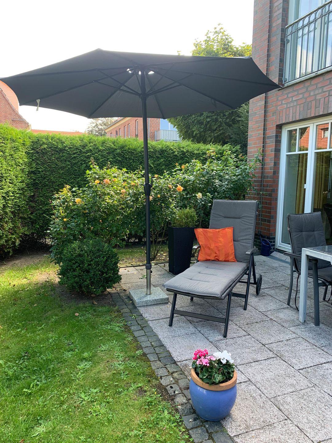 Direkt an die Wohnung grenzt eine eigene, möblierte Terrasse, die zu entspannten Stunden im Freien einlädt. Im gepflegten Außenbereich stehen Gartenmöbel zur Verfügung. Ein privater, kostenloser Parkplatz befindet sich unmittelbar am Haus. Für die Wäsche steht Ihnen eine gemeinschaftlich genutzte Waschmaschine zur Verfügung; außerdem ist ein Staubsauger vorhanden.