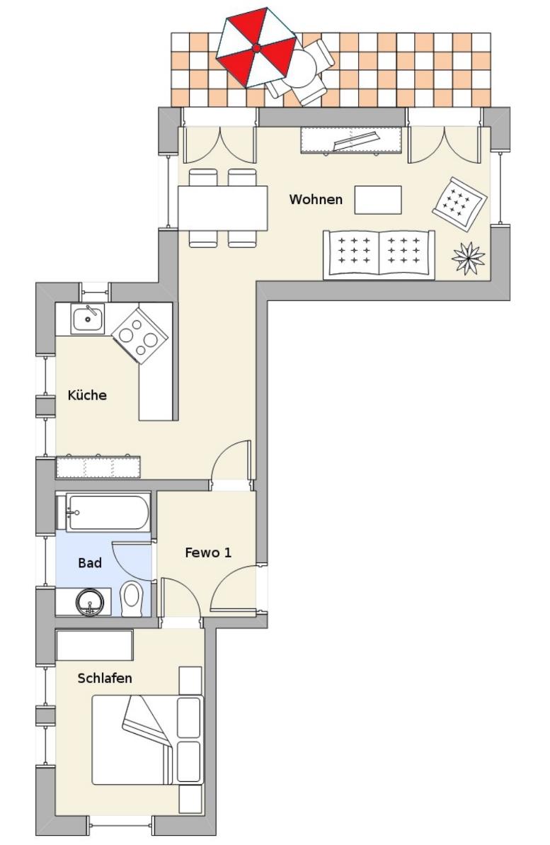 Komfortable Ferienwohnung mit Terrasse und Wlan für 4 Personen