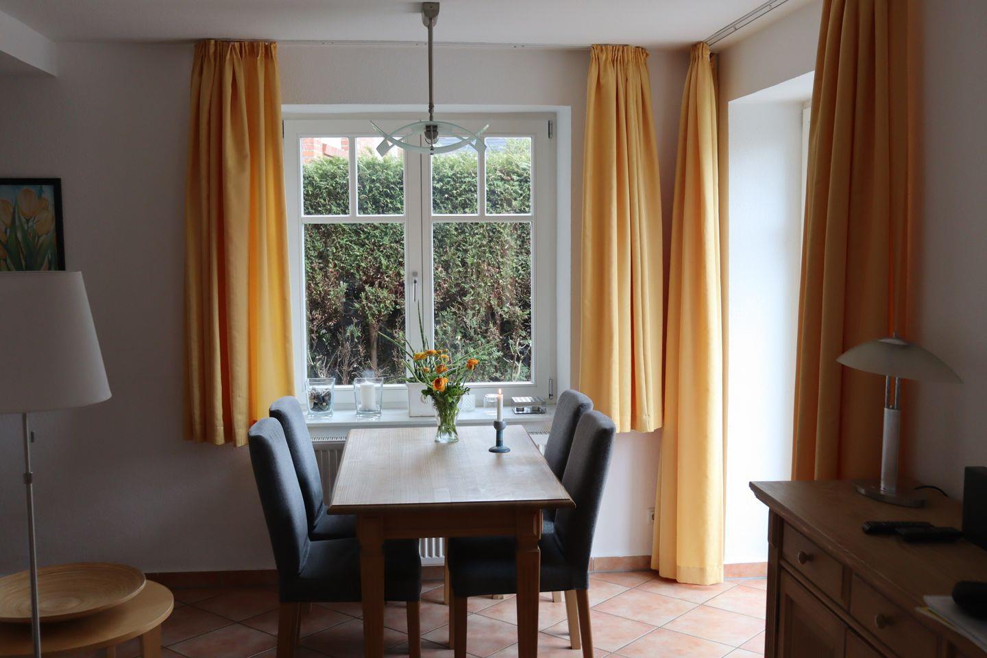 Das Badezimmer ist mit Fußbodenheizung einer Badewanne, in der auch geduscht werden kann, WC, Spiegel, Waschbecken, Haartrockner sowie warmem Wasser ausgestattet und bietet Komfort nach einem erlebnisreichen Tag an der Ostsee. Für zusätzlichen Komfort sorgen die Zentralheizung, Fliesenboden im Wohnzimmer und ein Sichtschutz an allen Fenstern für Ihre Privatsphäre.