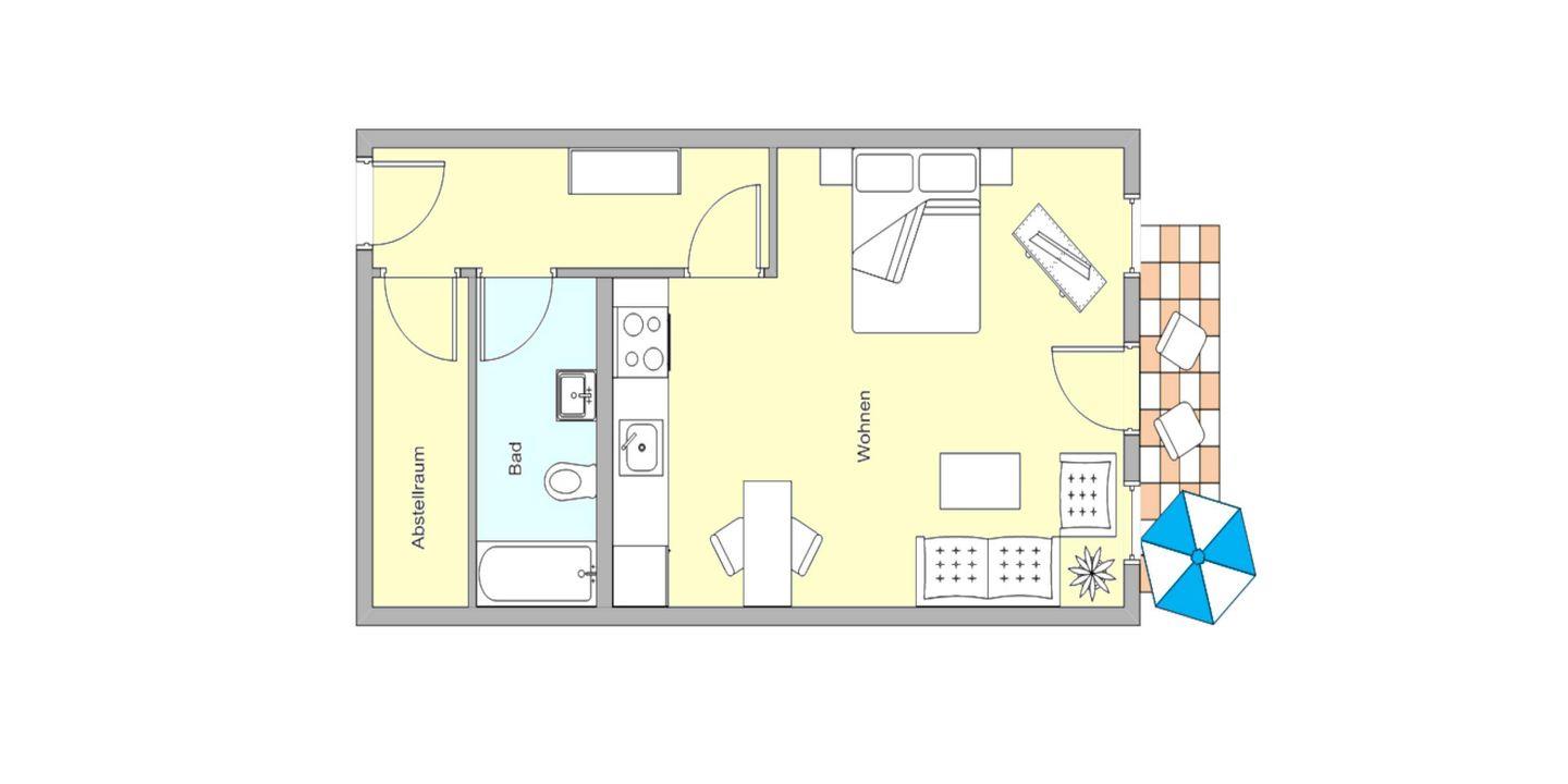 Dieses stilvolle 1-Zimmer-Apartment im 1. Obergeschoss der beliebten Apartmentanlage Möwenblick bietet auf großzügigen 50 Quadratmetern alles, was Sie für einen erholsamen Urlaub zu zweit brauchen.