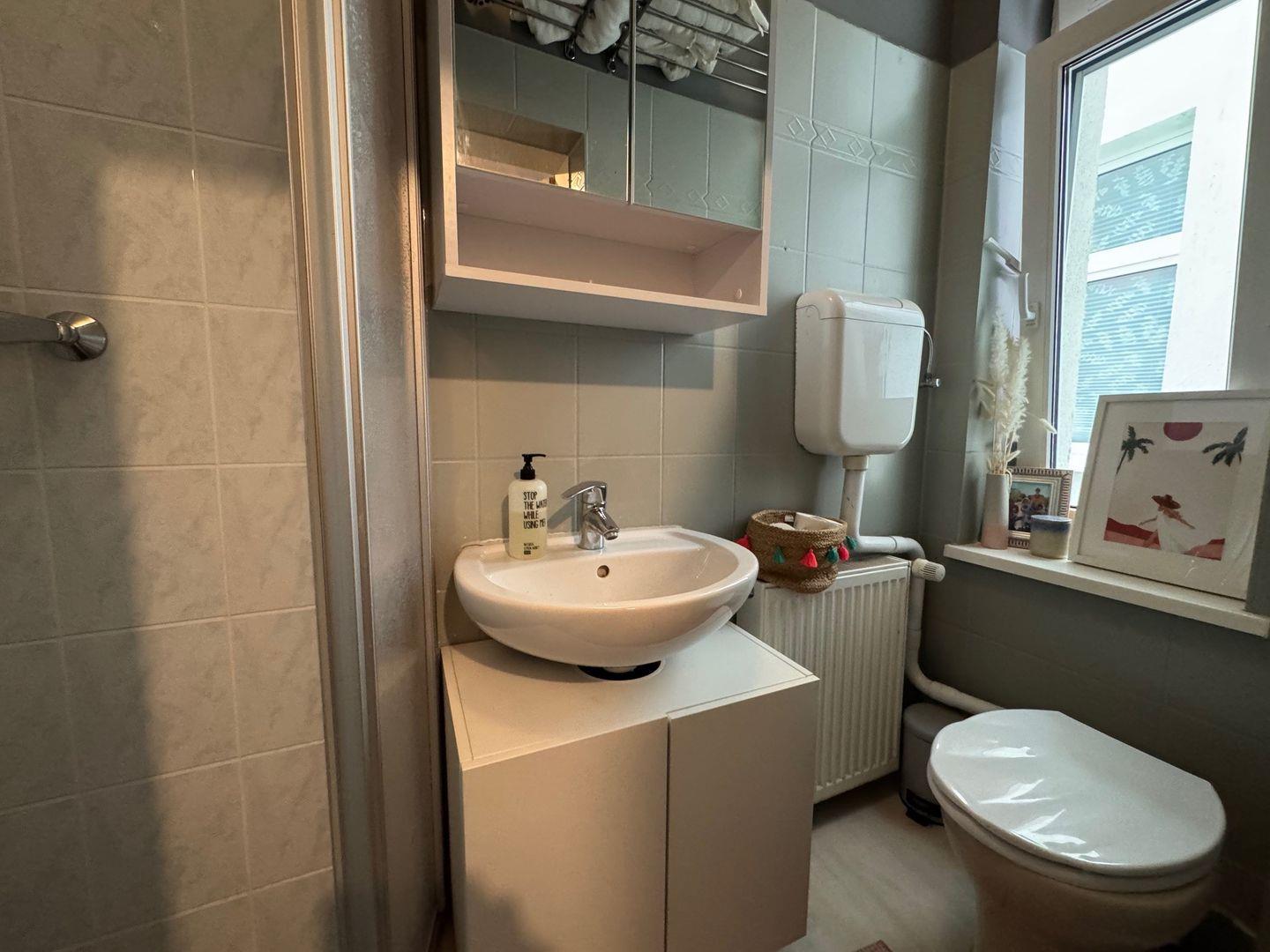 Das gepflegte Badezimmer mit Dusche, über den Hausflur erreichbar, bietet Ihnen zusätzlichen Raum und Privatsphäre. Die Hochparterre-Lage sorgt für angenehme Ruhe und ein behagliches Wohngefühl – perfekt, um den Alltag hinter sich zu lassen.