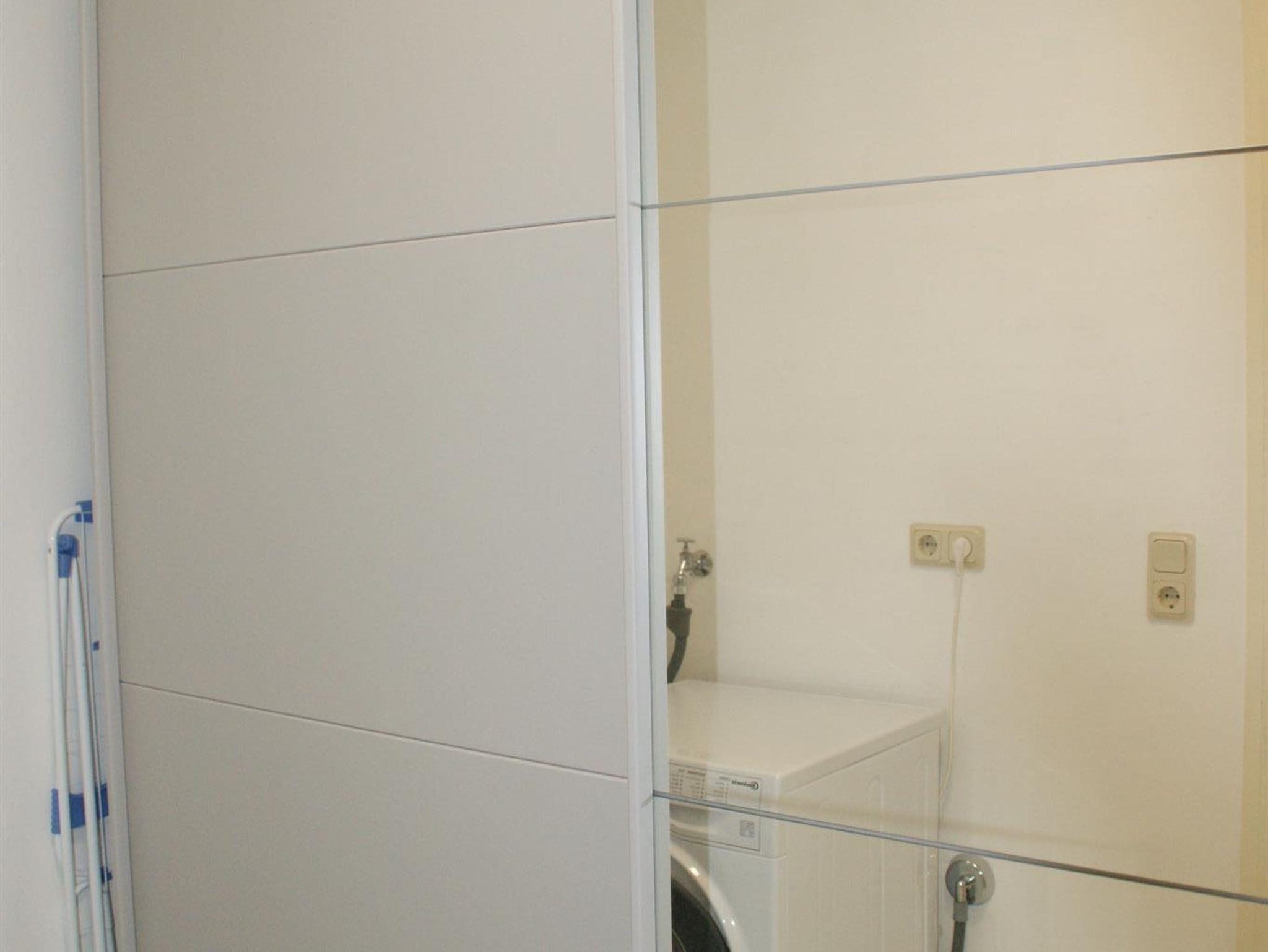 Die Waschmaschine und der Kleiderschrank sind im Abstellraum nebenan vorhanden und vor allem für längere Aufenthalte von Vorteil.