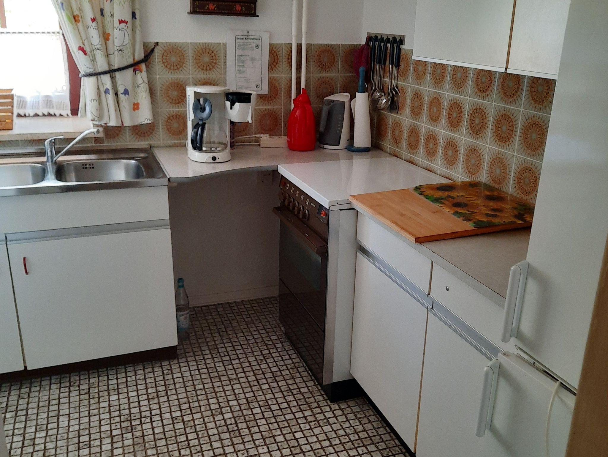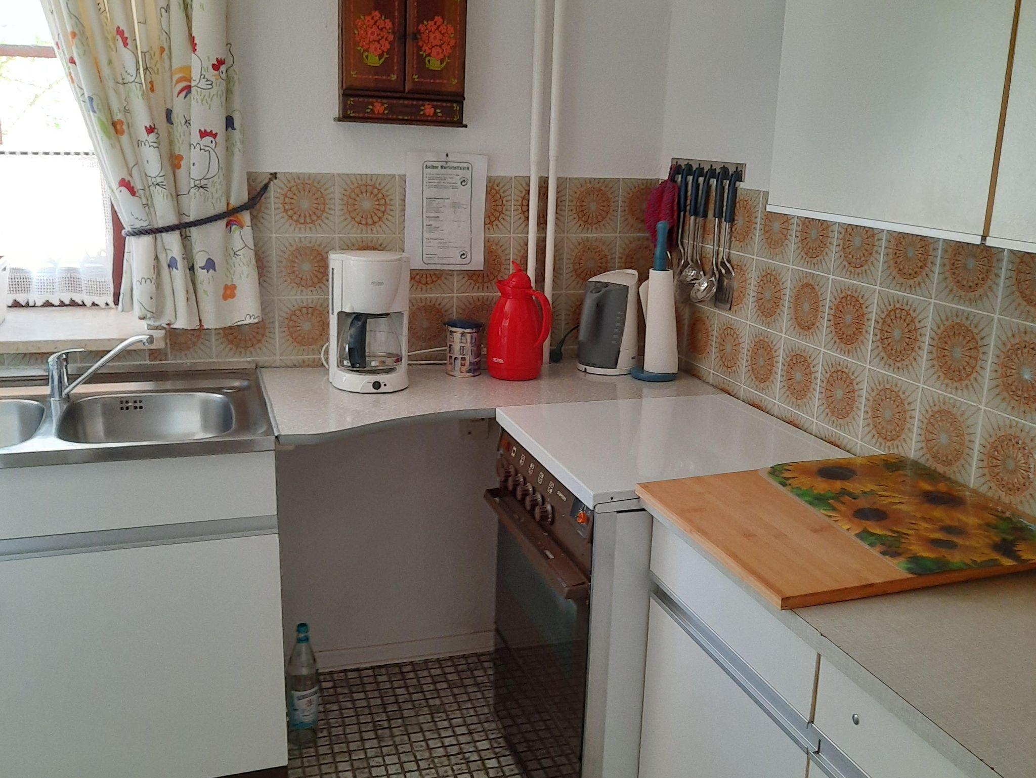Die Wohnung in einem Flachdachanbau eines Reetdachhauses im Souterrain verfügt über: