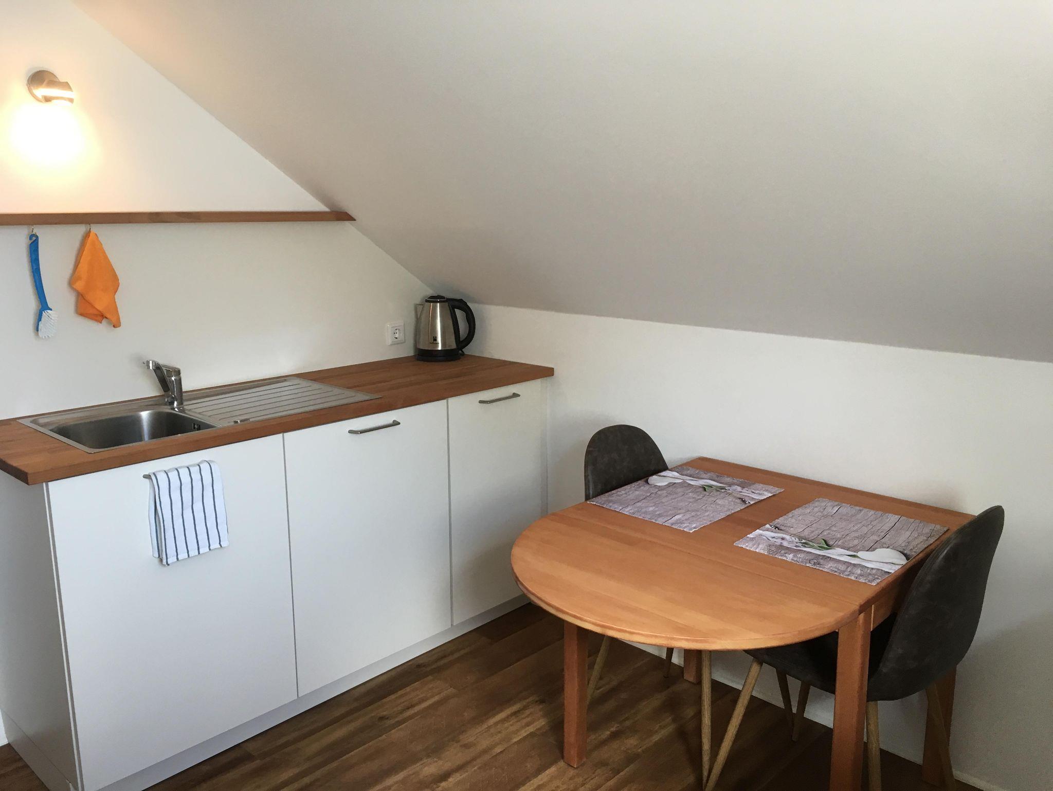 Bei Bedarf und nach Verfügbarkeit kann auch die Wohnung „Kajüte“ im Erdgeschoss hinzugebucht werden.
