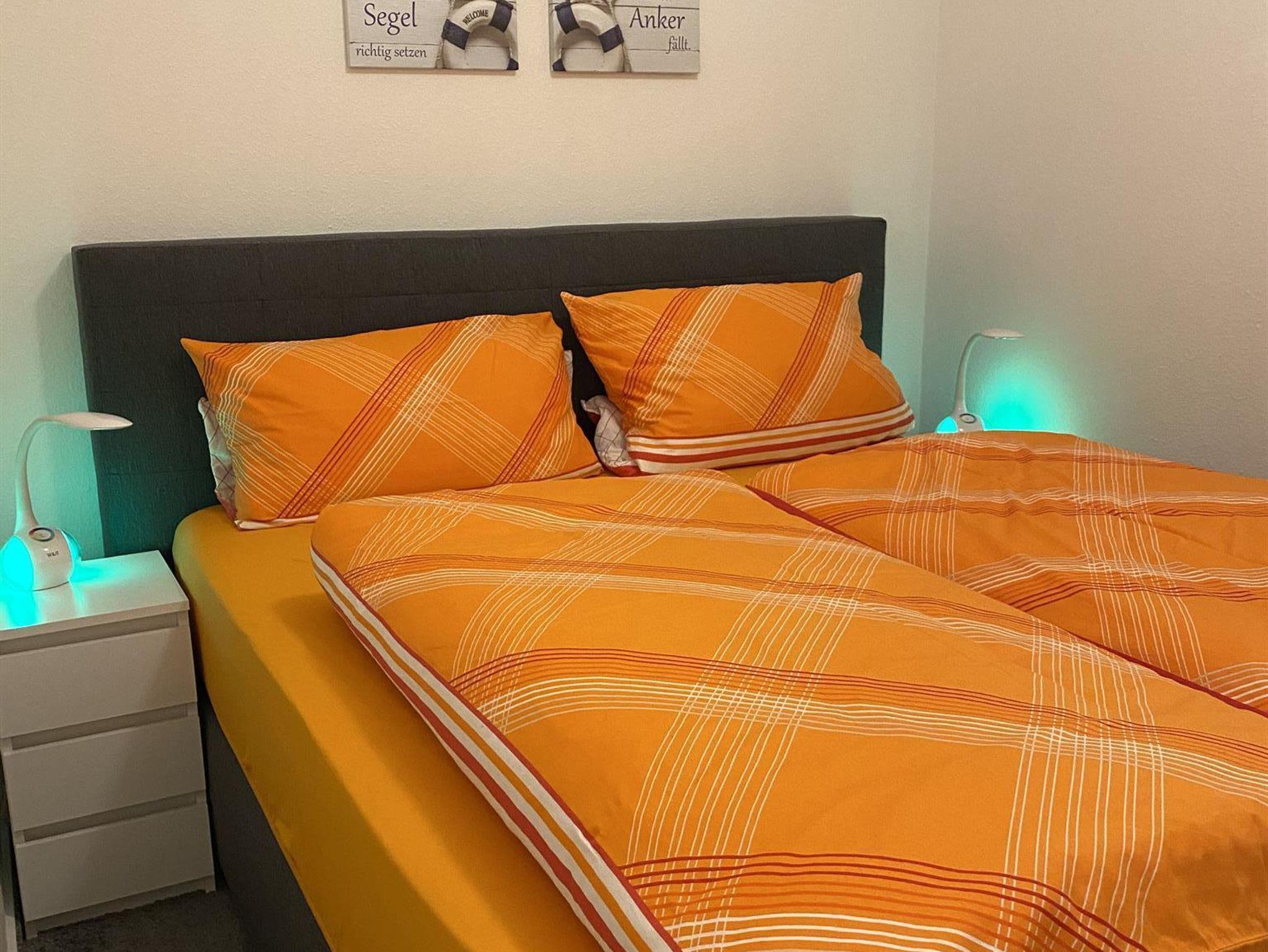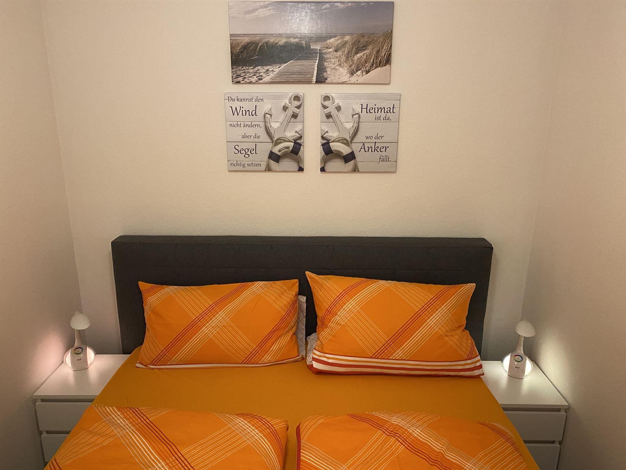 Das Schlafzimmer verfügt über ein Boxspringbett mit den Maßen 1,60 x 2,00 m für zwei Personen.