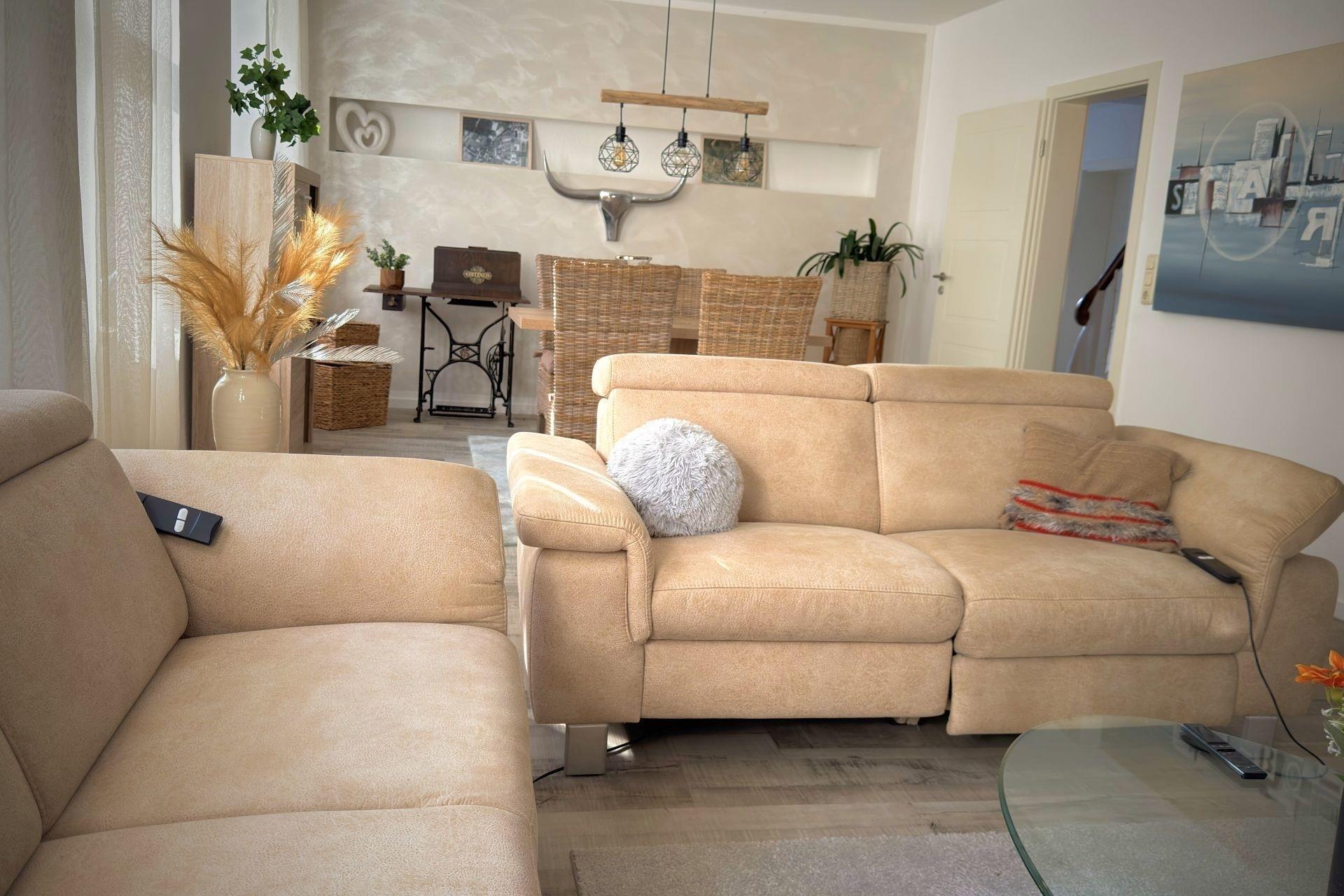 Unser frisch renoviertes Ferienhaus 2024 ist der ideale Rückzugsort für vier Personen und einen vierbeinigen Freund auf stolzen 155 qm, mit Parkplatz direkt vor der Tür. Hier ist genug Platz für alles – inklusive ausgiebige Nickerchen auf der Couch nach dem Mittagessen!