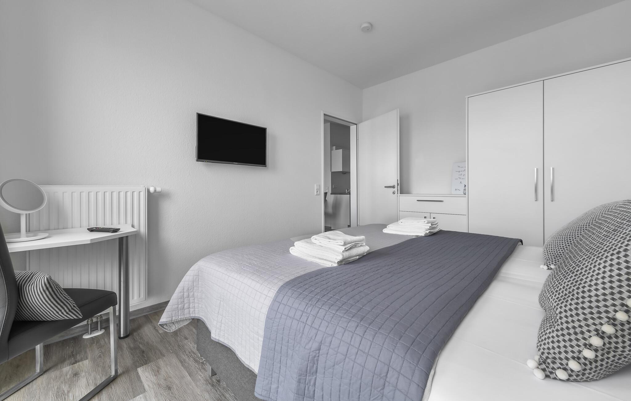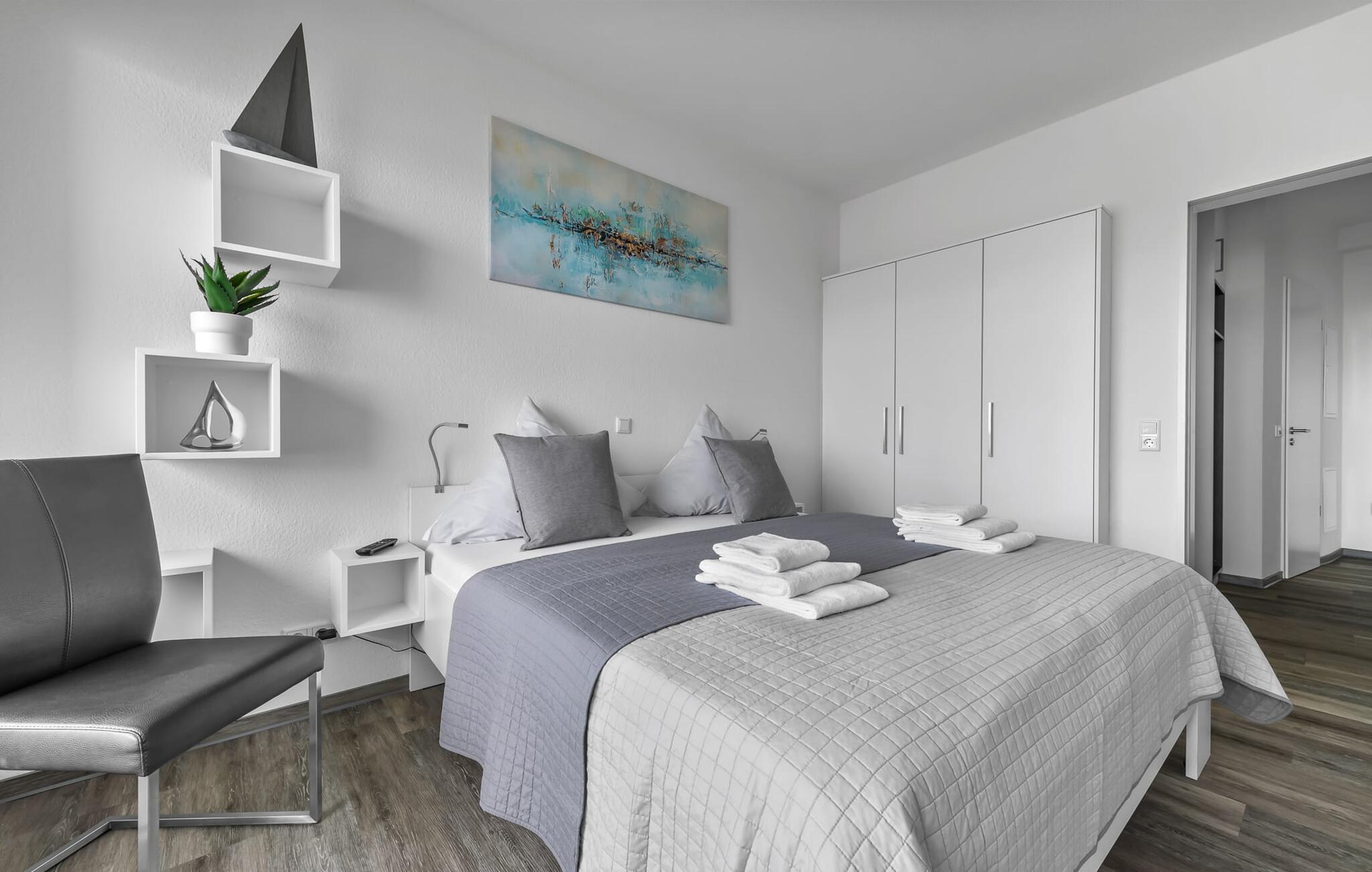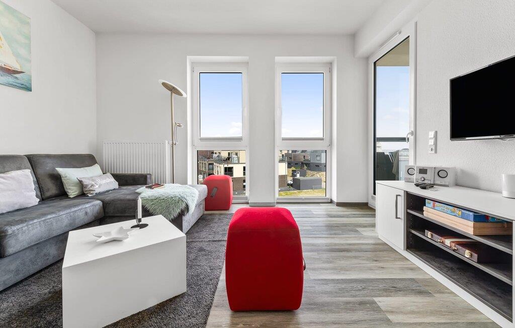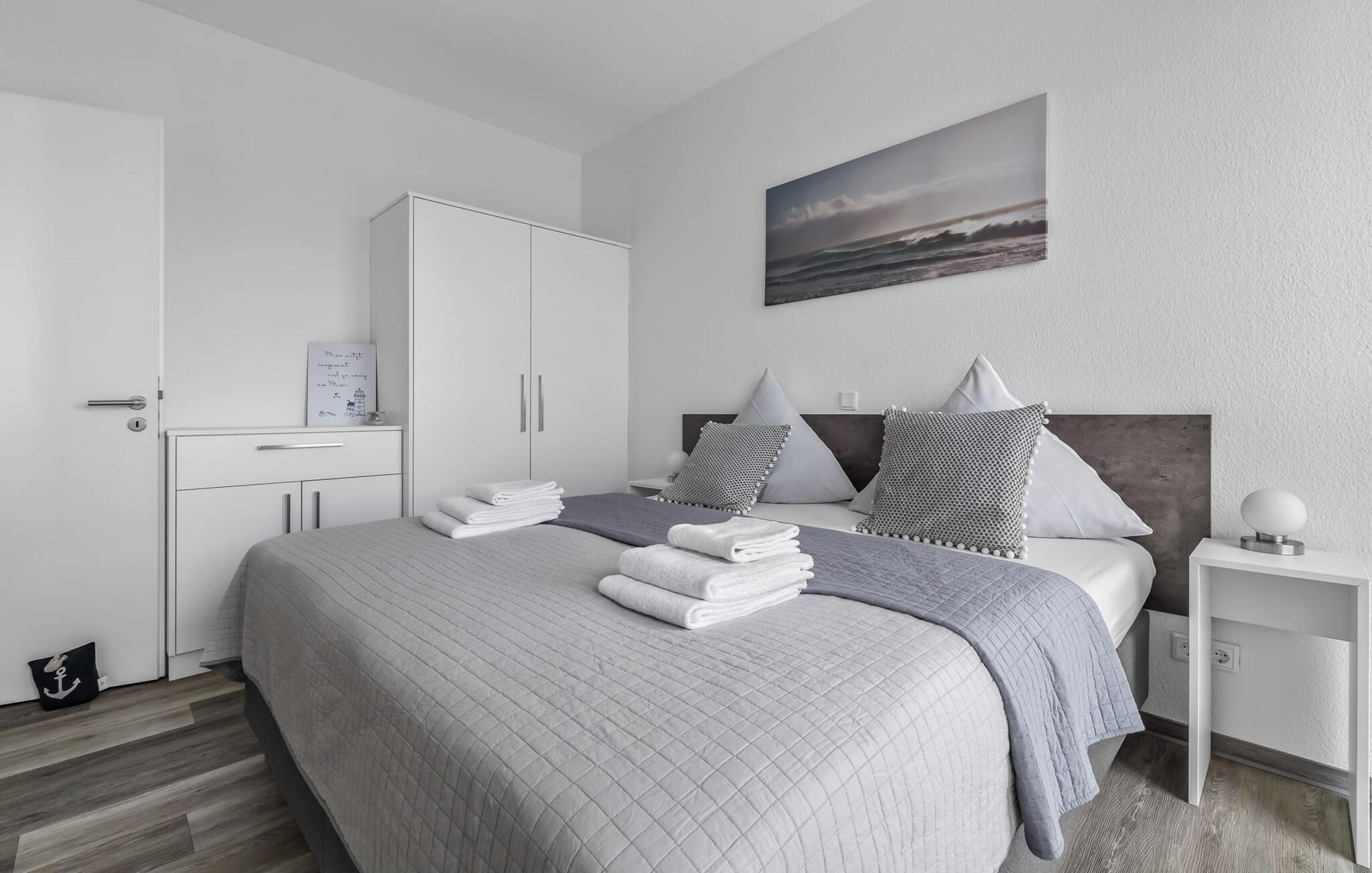 Die Wohnung verfügt über zwei geschmackvoll eingerichtete Schlafzimmer, eines mit einem komfortablen Doppelbett und das andere mit zwei Einzelboxspringbetten. Für zusätzlichen Schlafplatz kann die ausziehbare Couch im Wohnzimmer in zwei weitere Schlafplätze (160x200cm) verwandelt werden. In jedem Schlafzimmer sowie im Wohnzimmer befindet sich ein moderner Smart-TV, der Euch für Unterhaltung sorgt. Neben der hochwertigen Ausstattung bietet die Ferienwohnung kostenfreies WLAN, um Euch mit der Welt zu verbinden.