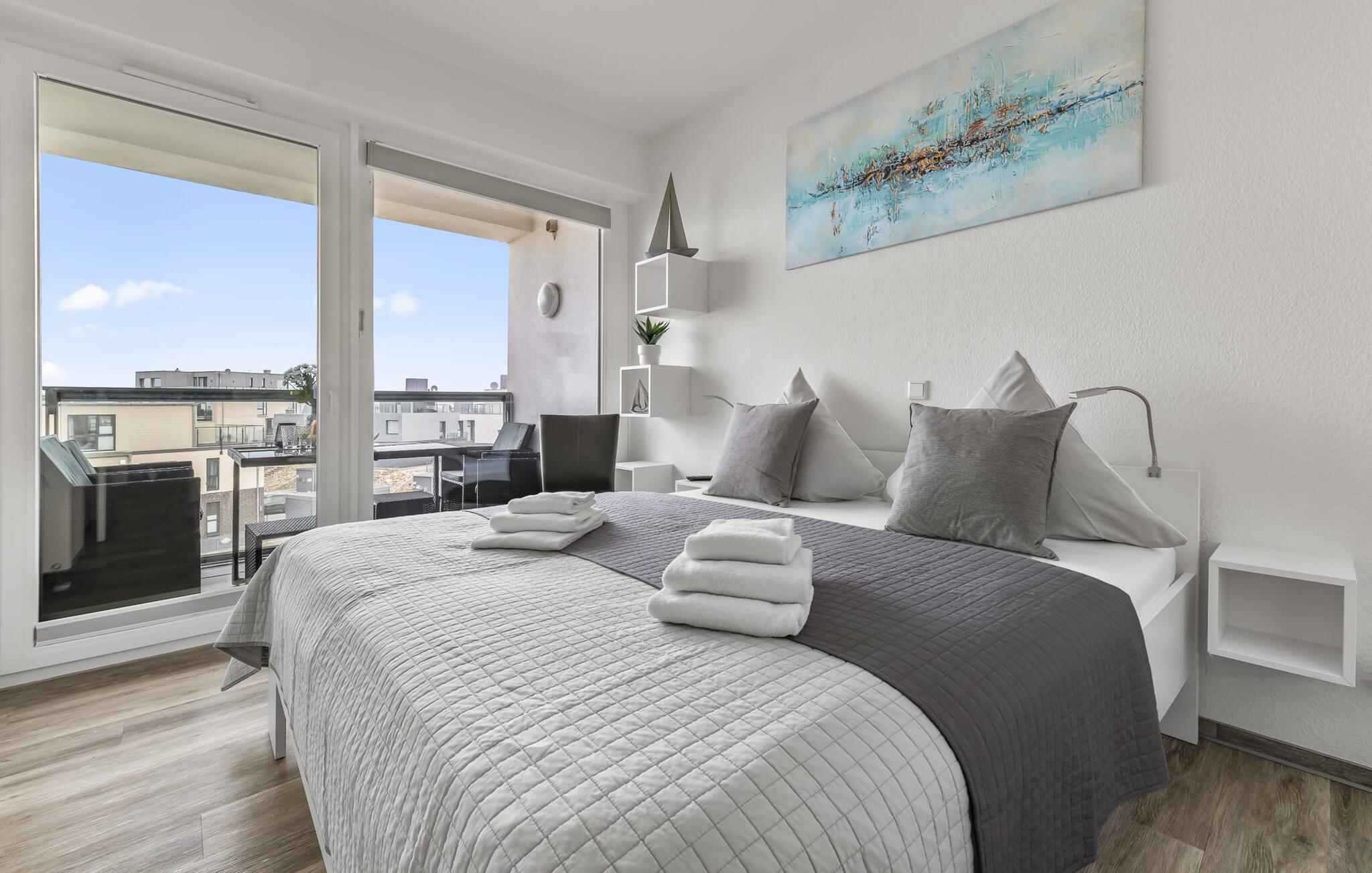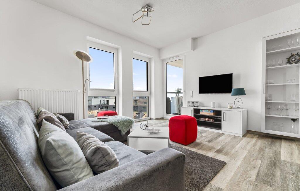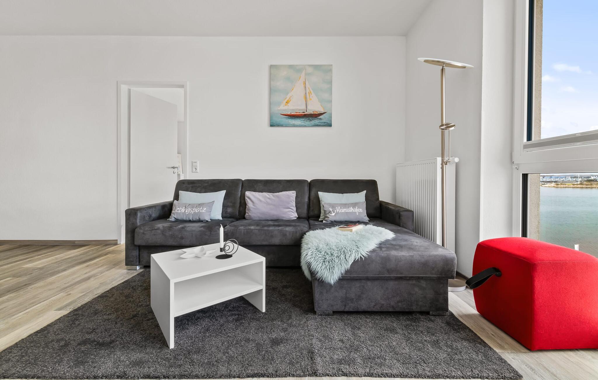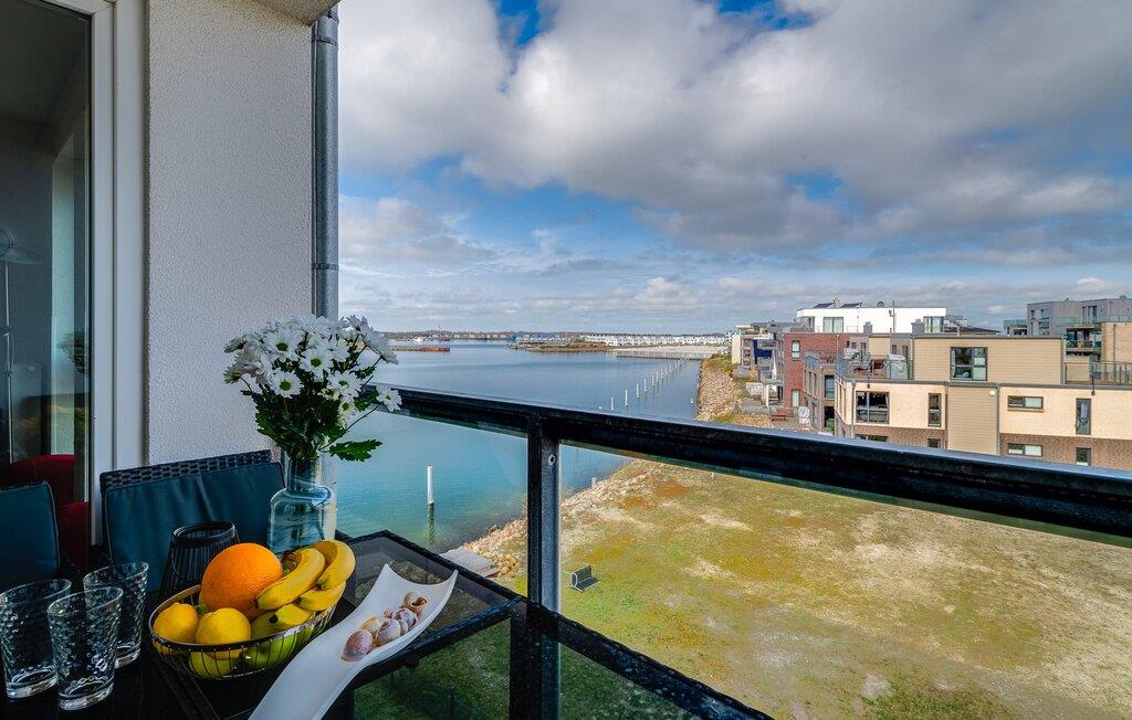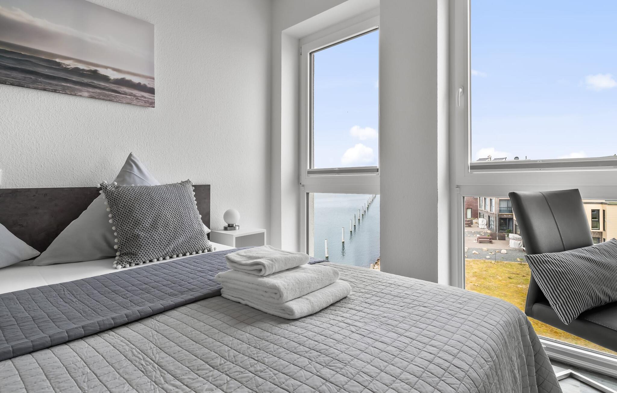 Genießen Sie die exklusive Ferienwohnung Wellenblick mit Panoramablick auf den Hafen und die Ostsee im OstseeResort Olpenitz.