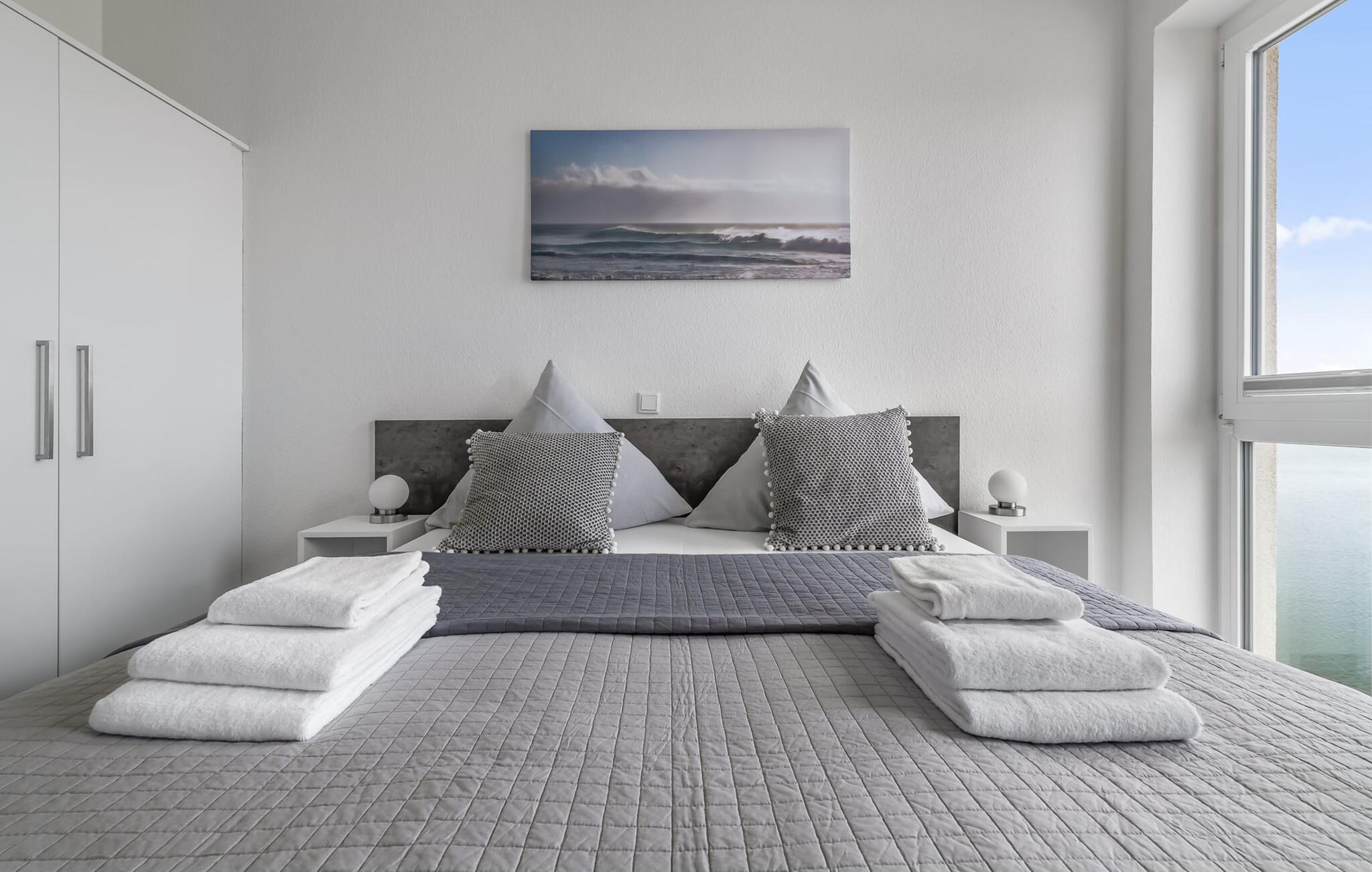 Für einen entspannten Urlaub für alle Gäste stehen zwei Duschbäder zur Verfügung. Die geschmackvolle Einrichtung der Wohnung vermittelt ein modernes, freundliches, warmes und einladendes Ambiente. Der Balkon führt direkt zum Wasser und bietet Euch eine idyllische Möglichkeit, die frische Meeresluft zu genießen und den Ausblick zu bewundern.