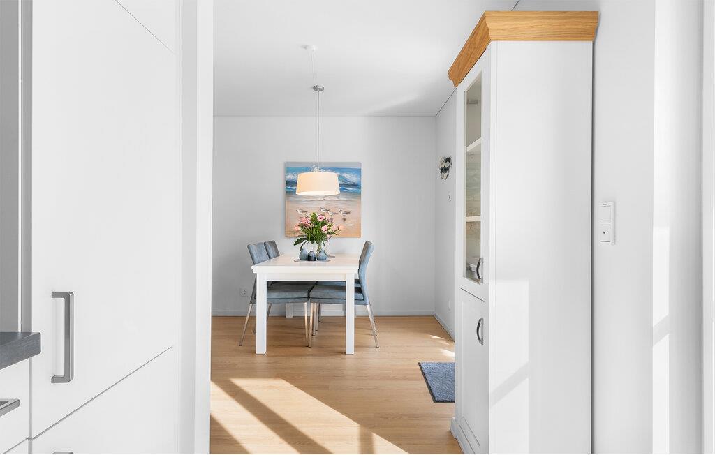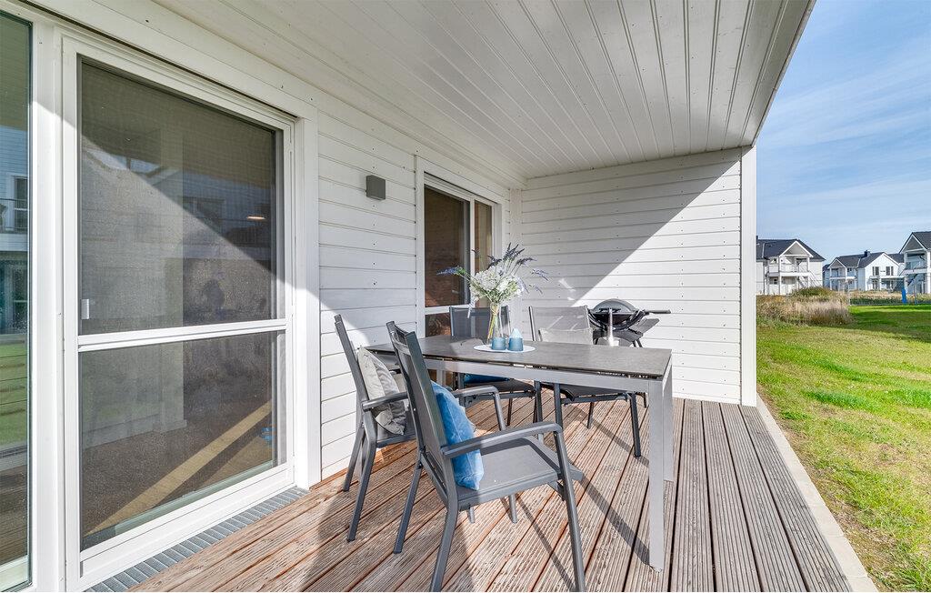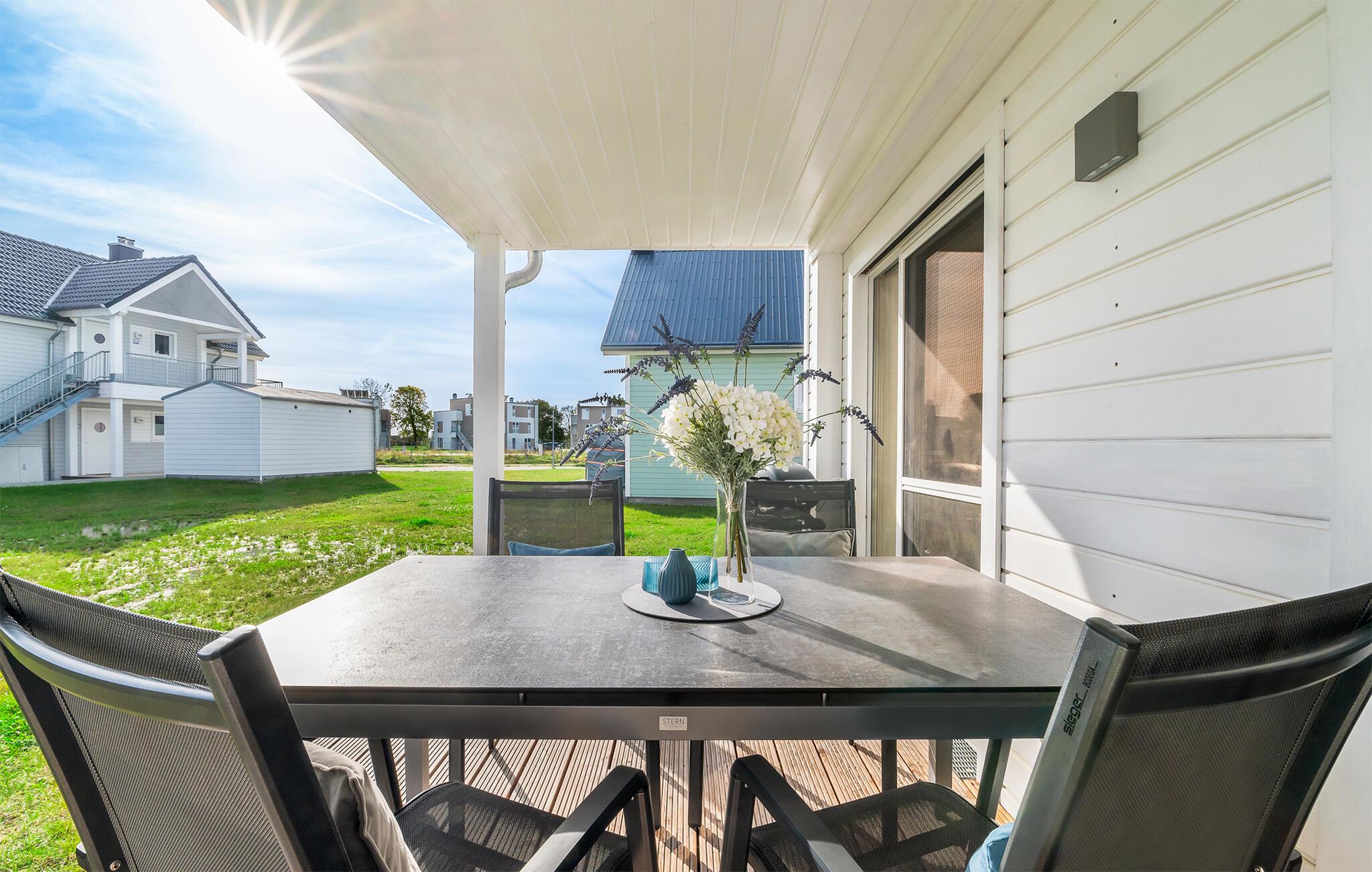 Ebenfalls an den Wohnbereich angrenzend findet ihr die großzügige Terrasse. Ob morgens mit einer Tasse Kaffee oder abends mit einem Glas Weinhier kann man die frische Ostseeluft genießen, den Möwen zuhören und mit ein bisschen Glück dem WELLENSPIEL der Ostsee lauschen.