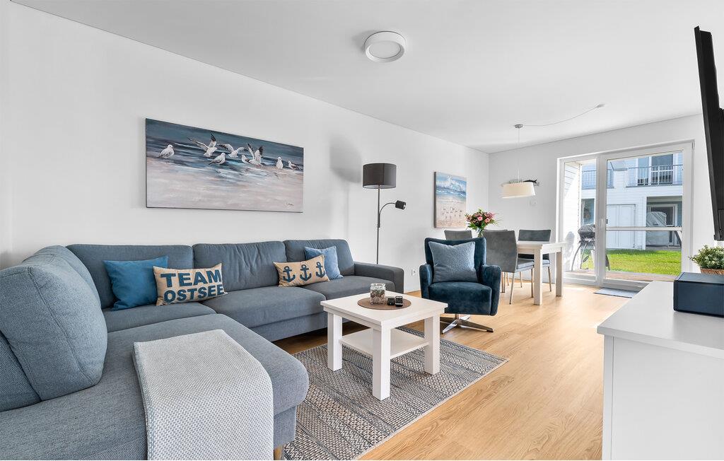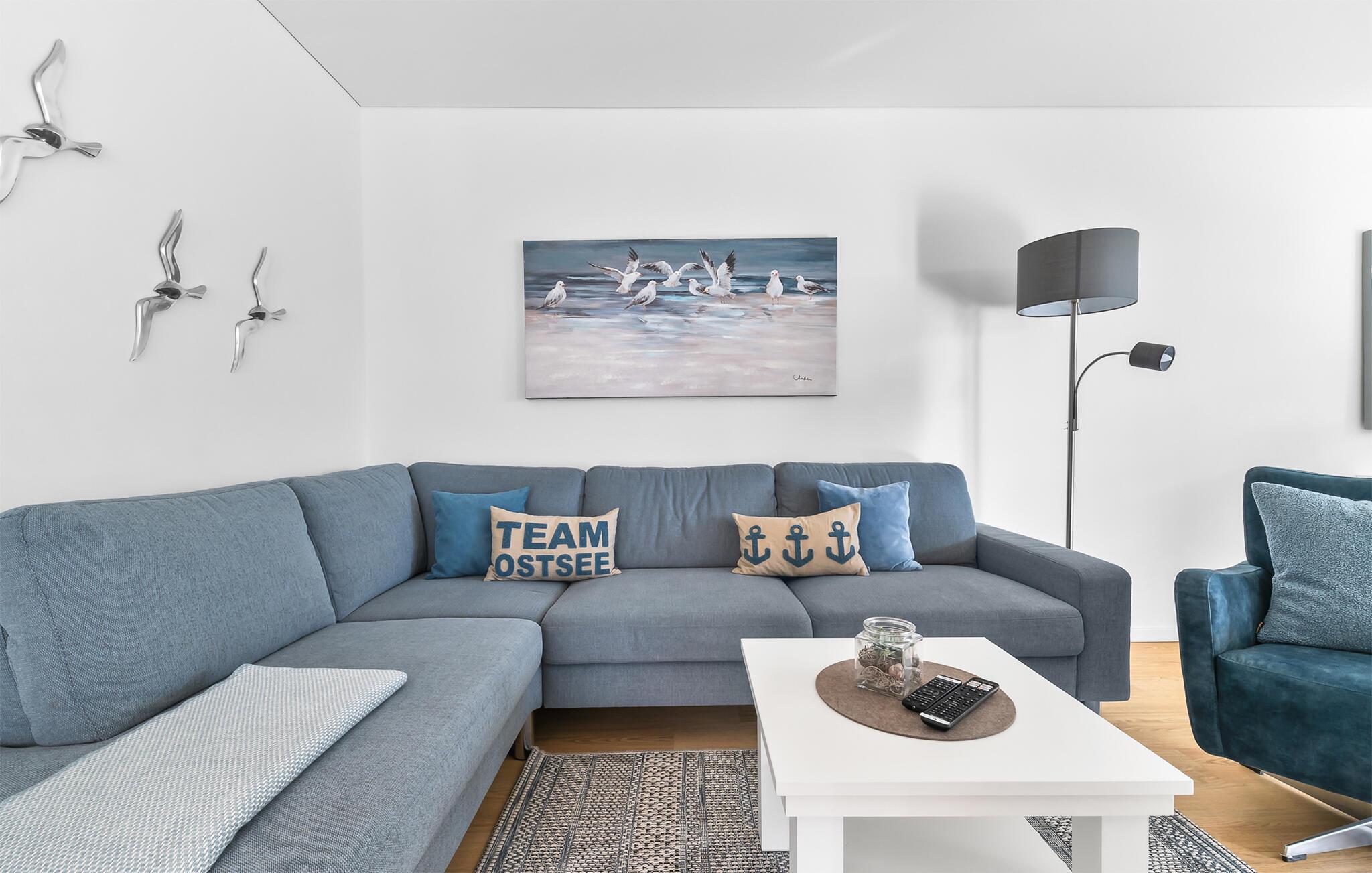 Gemütliche Ferienwohnung Wellenspiel nahe Strand und Yachthafen im OstseeResort Olpenitz mit Sauna und Kamin.