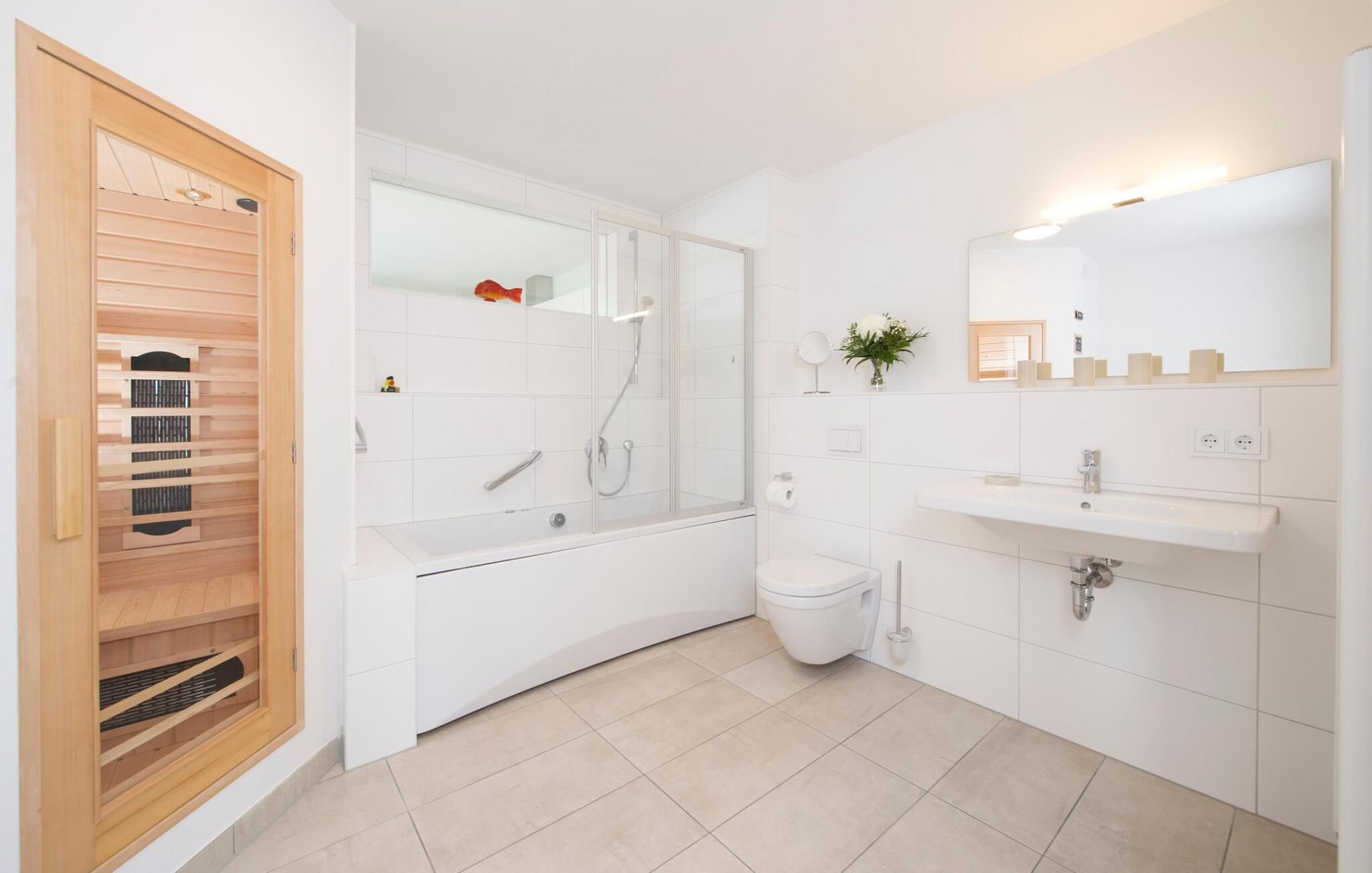 Und wer sich nach Wellness sehnt, der darf sich auf einen privaten Wellnessbereich freuenInfrarot Wärmekabine mit Hifi-Sound-System und LED-Farblichttherapie sowie eine Relax-Whirlwanne laden nach dem Strandspaziergang zum Entspannen ein.