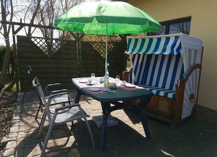 Der Außenbereich des Ferienhauses Welzin ist ein echtes Highlight. Der vollständig eingezäunte Garten bietet eine sichere Spiel- und Entspannungsfläche für Kinder und Haustiere. Die Terrasse ist mit komfortablen Gartenmöbeln und einem Strandkorb ausgestattet, perfekt für gemütliche Stunden im Freien. Hier können Sie die frische Luft und die Ruhe der Natur genießen, während die Kinder im Garten spielen.
