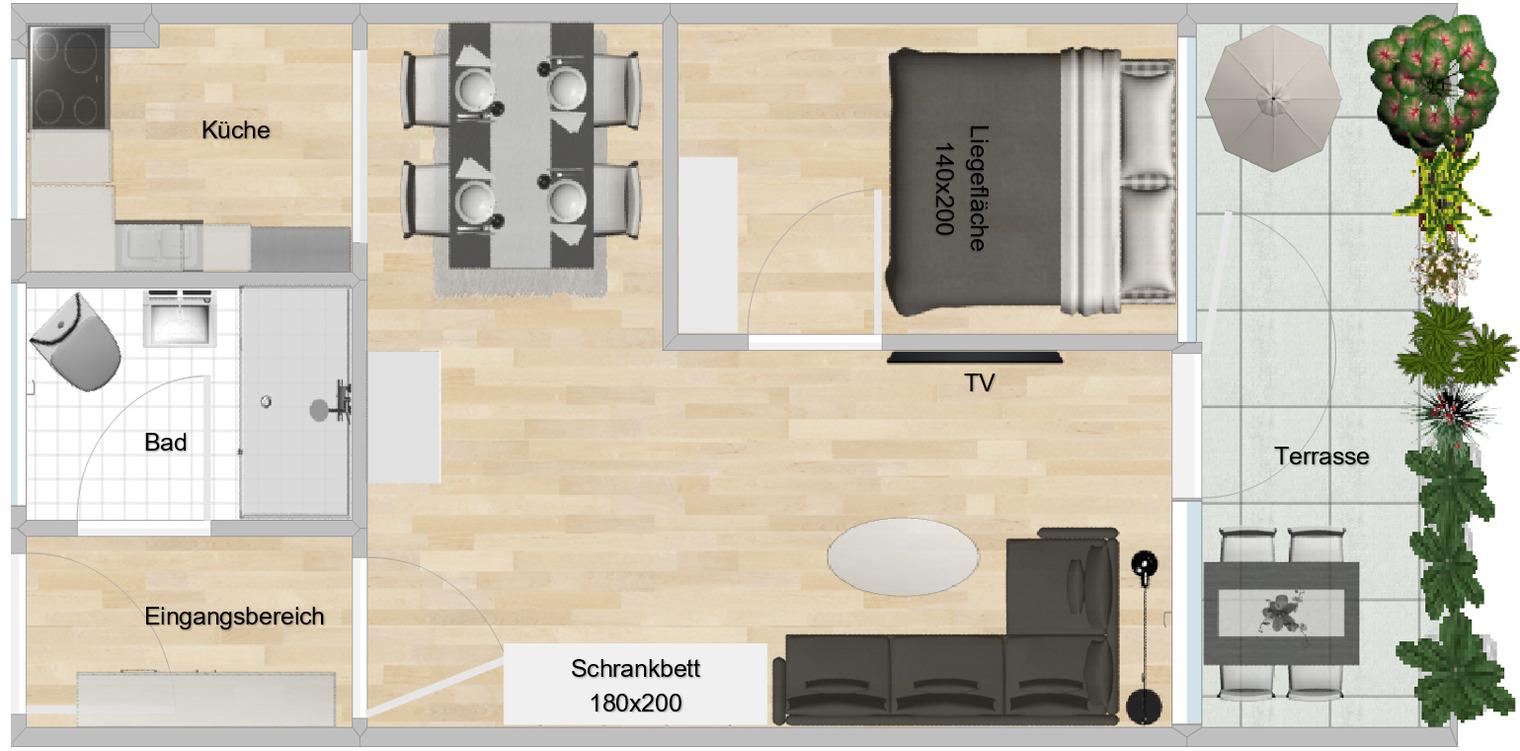 - Wohn-/Schlafzimmer, 25 m², 2 Personen