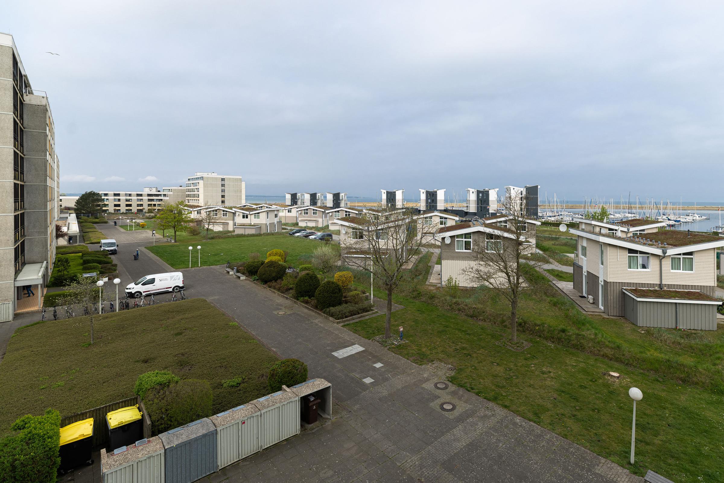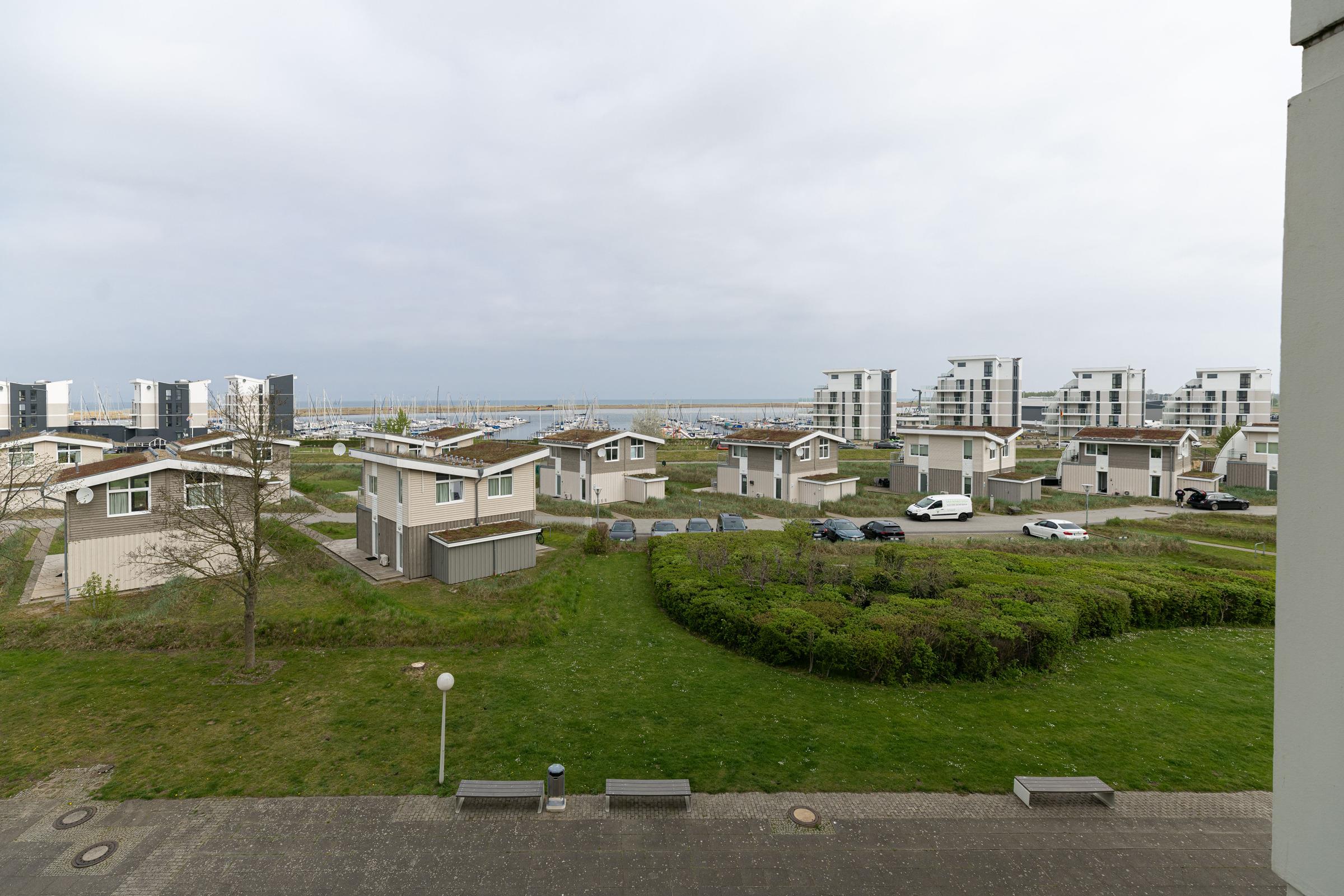 Der 4. Stock, in welchem sich die Wohnung befindet, erreichen Sie über das Treppenhaus oder aber bequem über den Fahrstuhl, der direkt gegenüber von der Wohnung hält. Wer noch höher hinaus möchte, kann über das per Hausflur verbundene Nachbarhaus Palstek 2a auf die Dachterrasse für einen grandiosen Rundumblick über die Marina, den Beginn der Kieler Förde und die Probstei genießen.