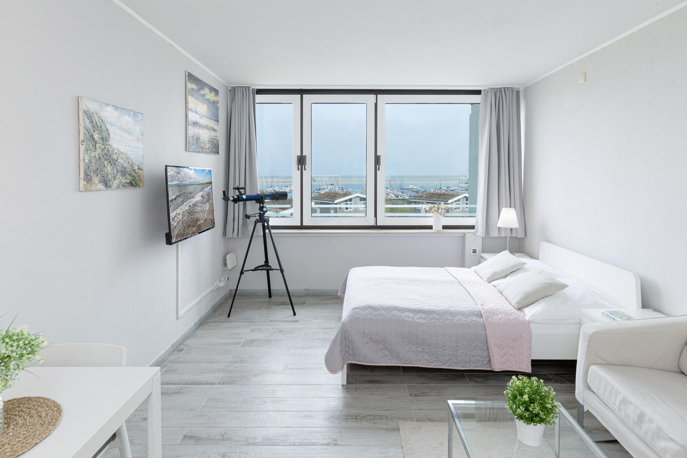 Hoch über der Marina Wendtorf befindet sich das gemütliche 1-Zimmer-Appartement Kajüte für max. 2 Personen im Haus Vogelzug (Palstek 2b).