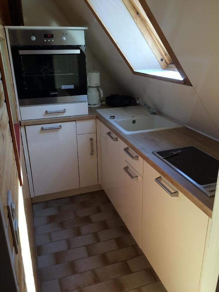 Hier stehen Ihnen die wichtigsten Utensilien, wie Kaffeemaschine, Wasserkocher, Mikrowelle, Kühlschrank und Zwei-Platten-Herd zur Verfügung, um sich ein leckeres Menü zuzubereiten.