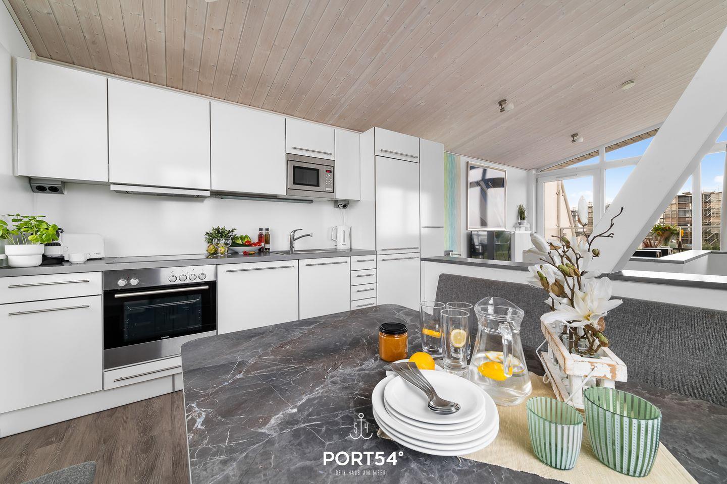 Stilvoll eingerichtete Doppelhaushälfte in unmittelbarer Hafen- und Strandnähe. Für bis zu vier Erwachsene und zwei Kinder bietet dieses Ferienhaus Highlights wie eine Trockensauna, Meerblick, Highspeed-WLAN über Glasfaser, Bioethanol-Kamin und eine traumhafte Umgebung zum Entspannen.