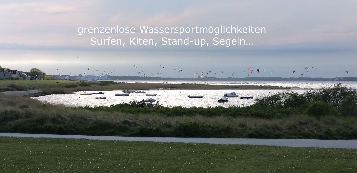 Auch ein Gartenschlauch für den Außenwasserhahn ist vorhanden. Die Möwe 12 verfügt über einen abschließbaren „Bike-Port“. Hier kannst du deine Fahrräder, Kinderwagen, Koffer und Wassersportgeräte komfortabel und sicher unterbringen. Für das Aufladen von E-Bikes gibt es selbstverständlich eine Steckdose. Direkt gegenüber von der Möwe12 befindet sich dein PKW Stellplatz. Die Lage ist großartig, weil du hier für jeden Geschmack das Passende findest: Eine unbeschreiblich schöne Natur mit zahllosen Möglichkeiten zum Spazierengehen, Walken und Joggen, Skaten, alle erdenklichen Wassersportmöglichkeiten wie Kiten, Stand-Up, Segeln etc. und endlose, gut ausgebaute Fahrradwege. Kilometerlange Strände mit Dünen finden Sie rechts von der Lagune, ca. 500m zu Fuß in Richtung Schönberg, sowie links von der Lagune Richtung Stein einen herrlichen Strand mit seichtem Wasser, großen Sandbänken, ideal für Kinder. Feinste Cocktails, Kaffee, Kuchen, kleine leckere Snacks bekommen Sie ca. 15 Minuten entfernt in Stein am „Tatort Hawaii“ und können alles in kostenlosen Strandkörben und Liegestühlen mit Meerblick genießen. Hier befindet sich auch die eine Wassersportschule und es gibt die Möglichkeit Surfbretter, SUPs etc. auszuleihen.