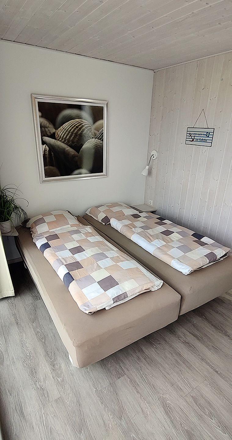 Im Erdgeschoss befinden sich zwei Schlafzimmer. Eines davon bietet zwei zusammengeschobene Einzelbetten (zusammen 180x200cm) und das andere zwei Einzelbetten (je 90x200cm). Eines der Schlafzimmer verfügt über einen TV, sowie beide über verdunkelbare Fenster. Ebenfalls im Erdgeschoss gelegen: das Badezimmer mit angenehmer Fußbodenheizung, ebenerdiger Dusche, WC, Waschbecken und Whirlpool.