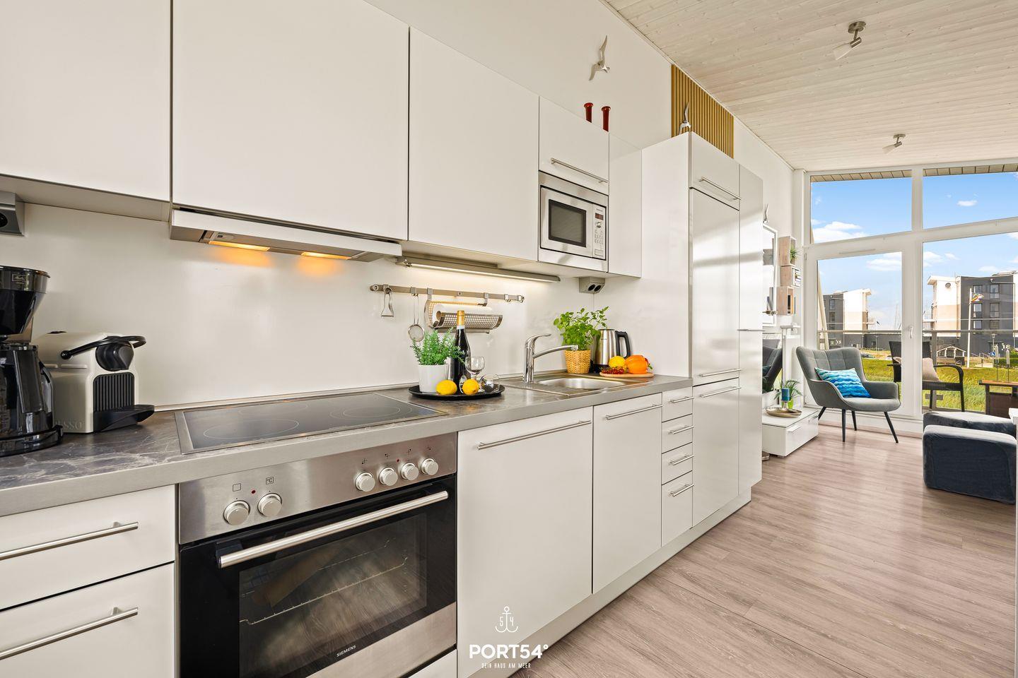 Es gibt eine Sauna, einen Kamin und eine offene Küche mit Wohnbereich samt Balkon (1. OG) für gemütliche Abende bei perfekter Aussicht. Freuen Sie sich auf das moderne helle Interieur sowie die perfekt ausgestattete Küche für Hobbyköche.