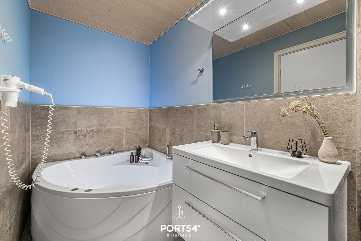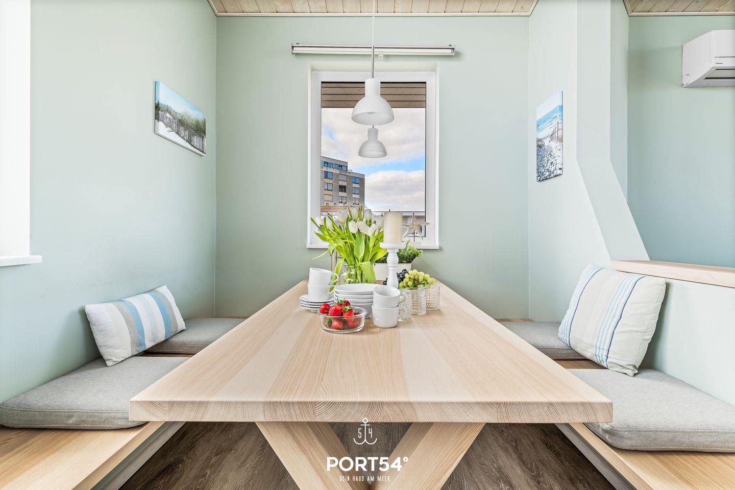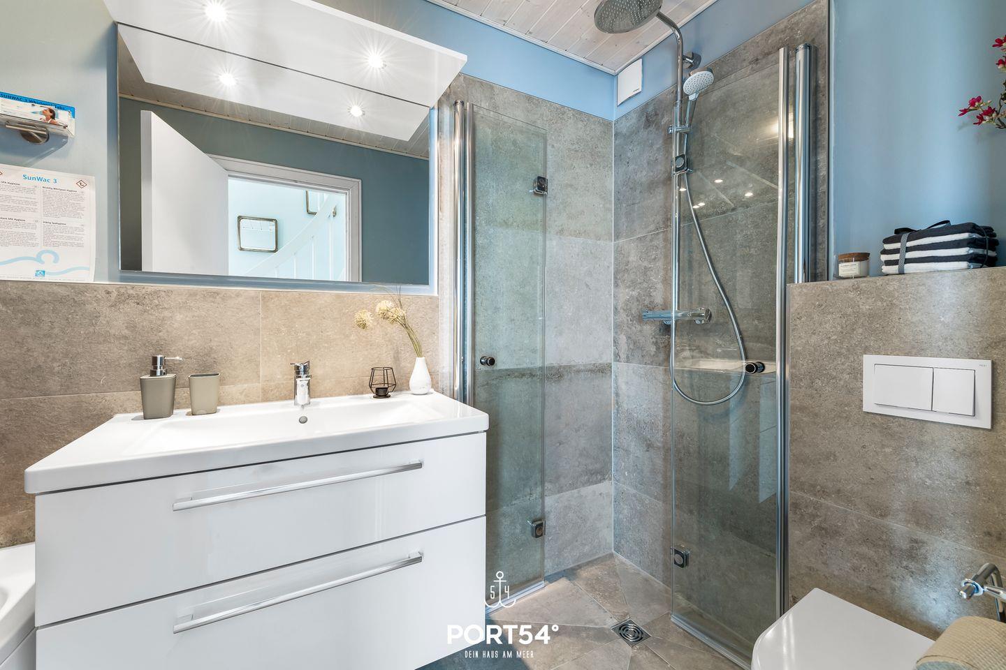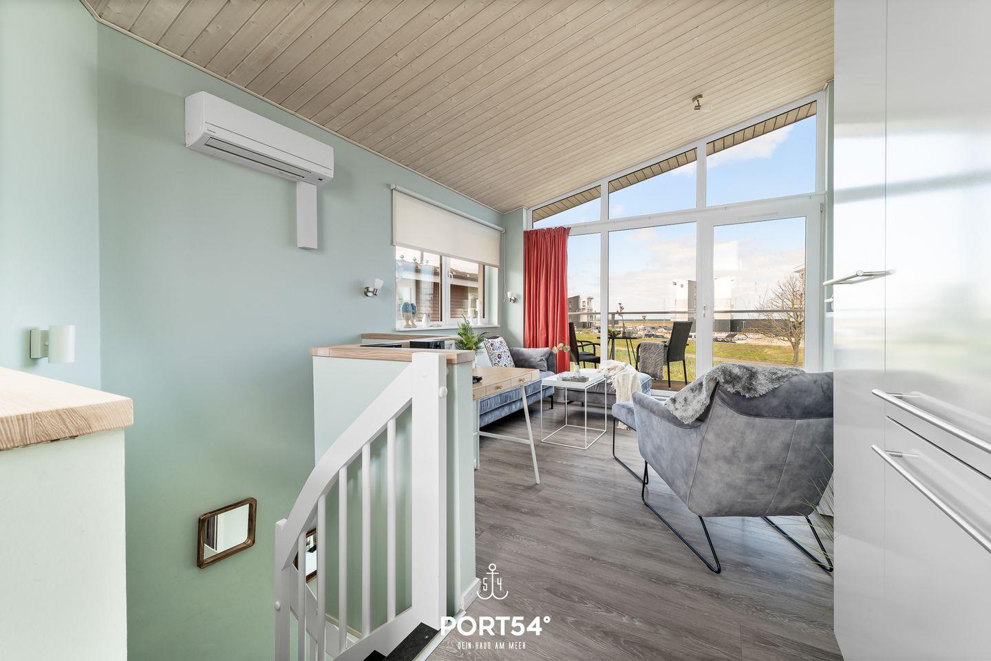 Im Außenbereich laden Sitzmöglichkeiten und Sonnenliegen auf dem Balkon und der Terrasse zum Entspannen ein. Ein Sonnenschirm sowie ein Holzkohlegrill runden die Ausstattung ab. Ebenfalls befindet sich am Haus ein kostenfreier PKW Stellplatz und ein abschließbarer Fahrradschuppen. Ob heiße Sommertage, laue Sommerabende, stürmische Herbstnachmittage oder kühle Wintertage: diese Doppelhaushälfte besticht mit seiner hochwertigen Ausstattung sowie einer naturnahen Umgebung zu jeder Jahreszeit. Vom Balkon aus genießt du den Blick Richtung Meer.
