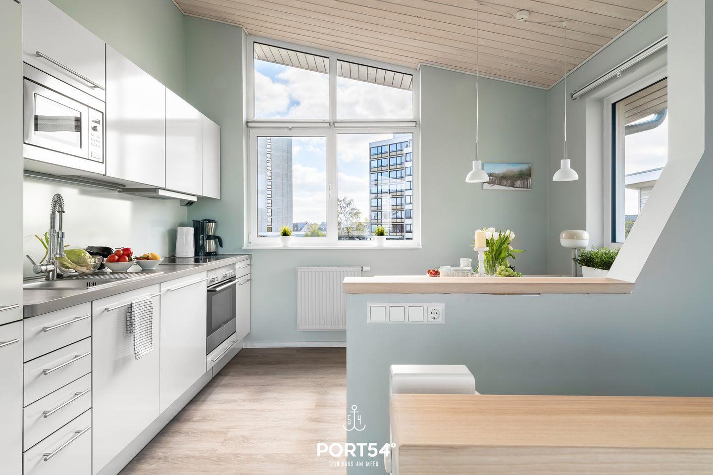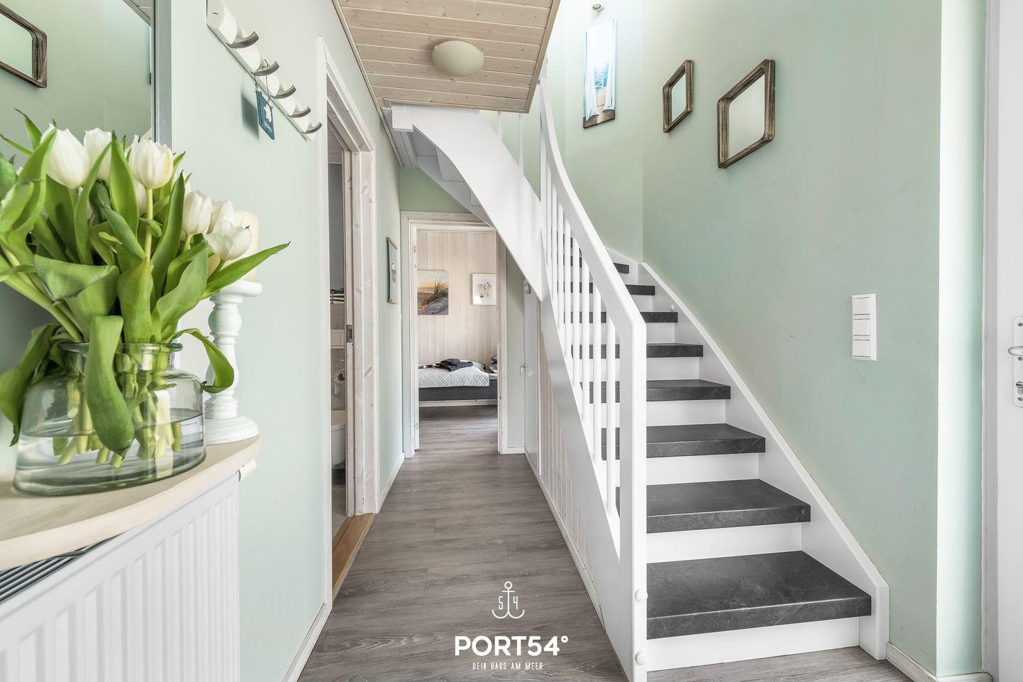 Im Außenbereich laden Sitzmöglichkeiten und Sonnenliegen auf dem Balkon und der Terrasse zum Entspannen ein. Ein Sonnenschirm sowie ein Holzkohlegrill runden die Ausstattung ab. Ebenfalls befindet sich am Haus ein kostenfreier PKW Stellplatz und ein abschließbarer Fahrradschuppen. Ob heiße Sommertage, laue Sommerabende, stürmische Herbstnachmittage oder kühle Wintertage: diese Doppelhaushälfte besticht mit seiner hochwertigen Ausstattung sowie einer naturnahen Umgebung zu jeder Jahreszeit. Vom Balkon aus genießen Sie den Blick Richtung Meer.