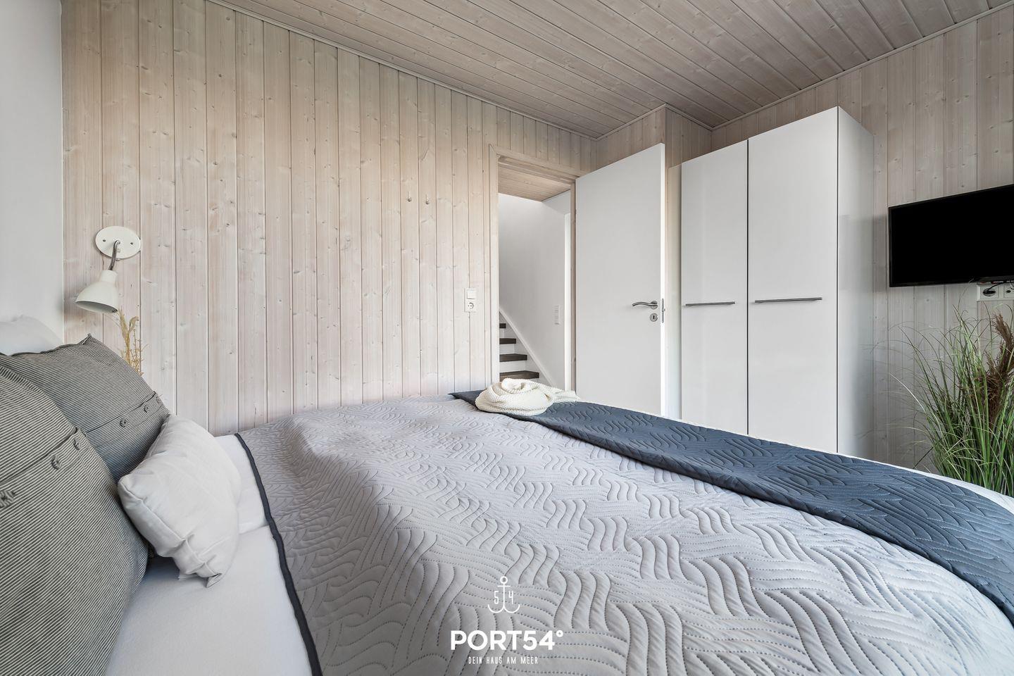 Im Erdgeschoss befinden sich zwei Schlafzimmer. Eines davon bietet zwei zusammengeschobene Einzelbetten (zusammen 180x200cm) und das andere zwei Einzelbetten (je 90x200cm). Eines der Schlafzimmer verfügt über einen TV, sowie beide über verdunkelbare Fenster. Ebenfalls im Erdgeschoss gelegen: das Badezimmer mit angenehmer Fußbodenheizung, ebenerdiger Dusche, WC, Waschbecken und Whirlpool.