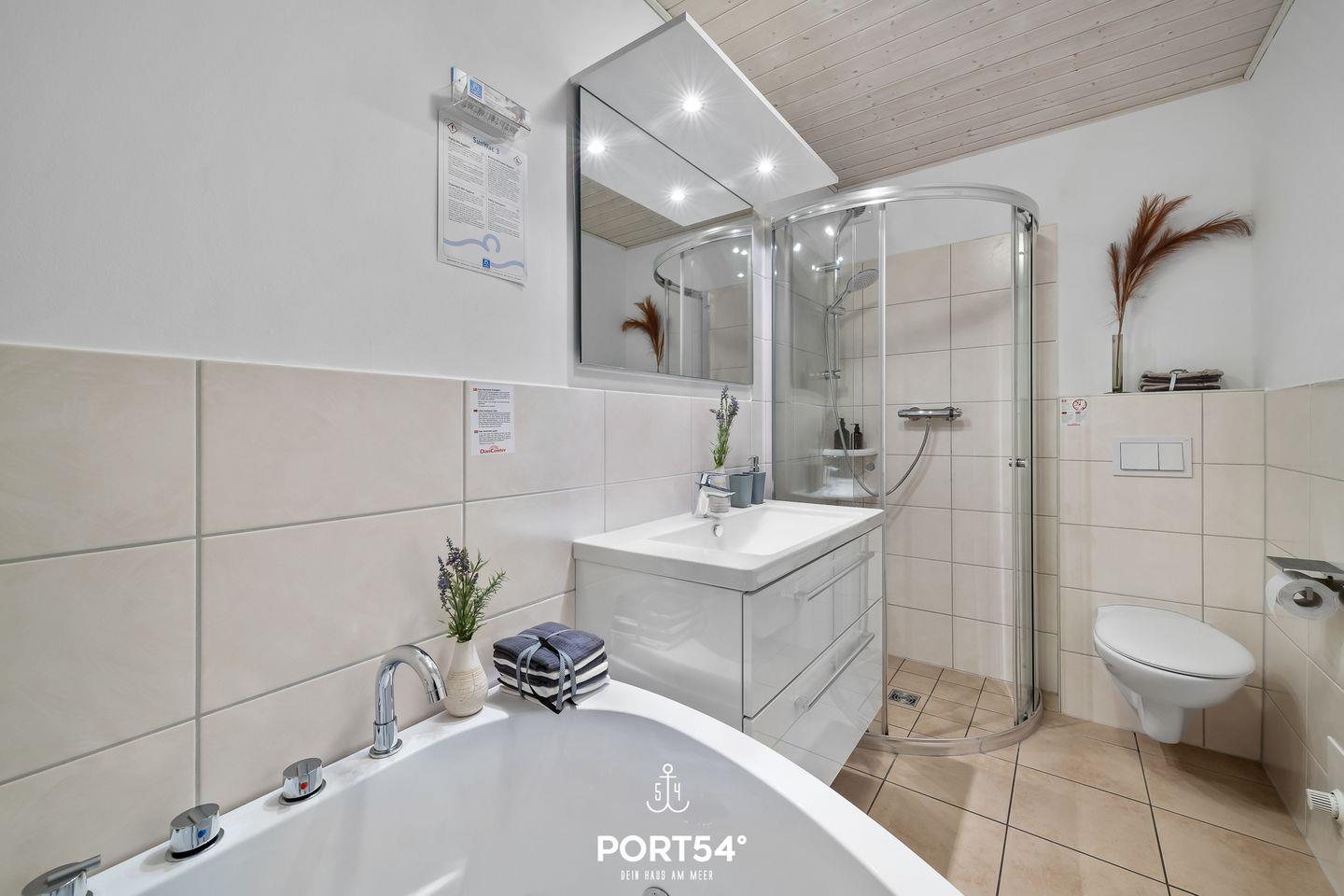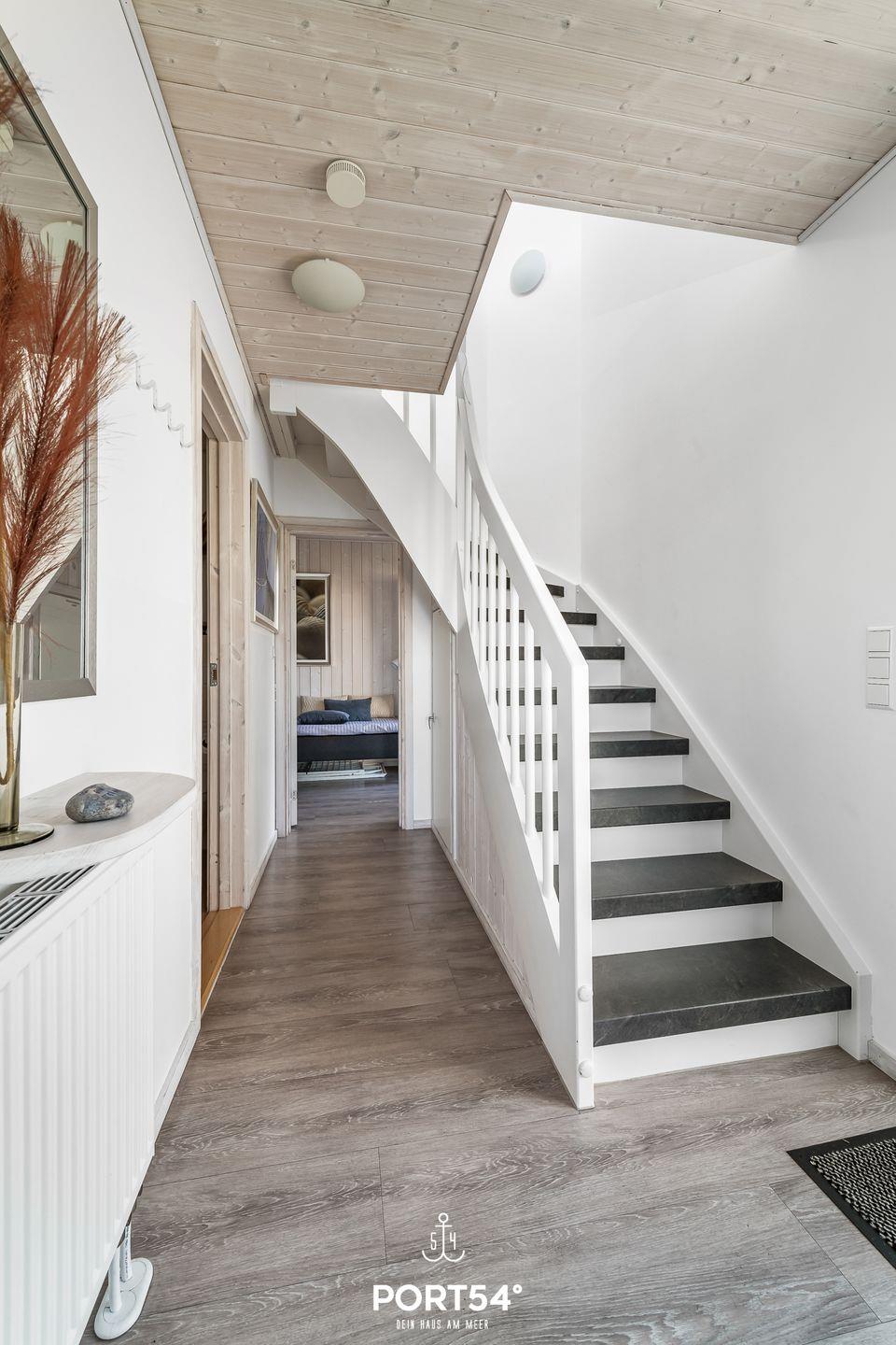 Ebenfalls befindet sich am Haus ein kostenfreier PKW Stellplatz und ein abschließbarer Fahrradschuppen. Ob laue Sommerabende, stürmische Herbstnachmittage oder kühle Wintertage: diese Doppelhaushälfte besticht mit seiner Ausstattung sowie einer naturnahen Umgebung zu jeder Jahreszeit. Vom Balkon aus genießt du den Blick Richtung Meer. Hunde sind in diesem Haus willkommen!