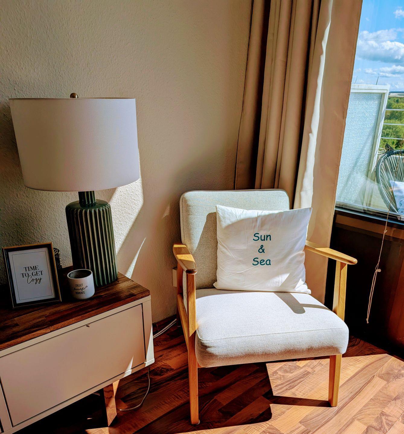 Besonders hervorzuheben ist der Balkon, auf dem Sie die frische Ostseeluft genießen können. Er ist mit Gartenmöbeln ausgestattet und bietet einen seitlichen Meerblick, der Ihre Morgende unvergesslich macht. Der im Gebäude vorhandene Aufzug ermöglicht einen unkomplizierten Zugang zur Wohnung, was besonders für Gäste mit eingeschränkter Mobilität von Vorteil ist.