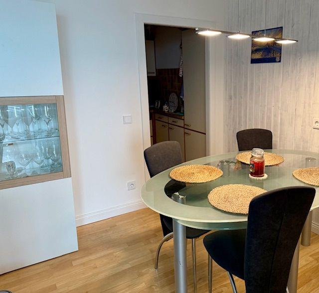 Die voll ausgestattete Küche ist offen gestaltet und bietet alles, was du brauchst: Herd, Backofen, Geschirrspüler, Toaster, Wasserkocher und sogar einen Eierkocher. Hier kannst du dir frische Zutaten vom nahegelegenen Fischkutter zubereiten und den Geschmack der Ostsee genießen. Das moderne Duschbad lässt keine Wünsche offen.