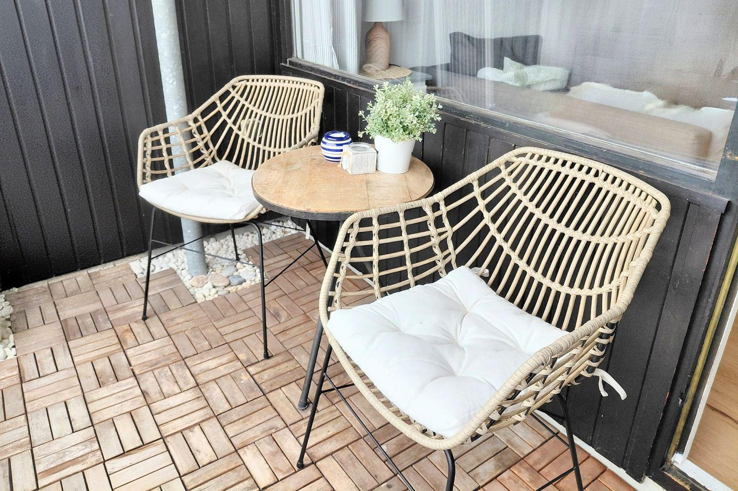 Ein besonderes Highlight ist der überdachte Balkon mit gemütlichen Gartenmöbeln. Hier kannst du entspannte Stunden genießen und die frische Meeresluft aufnehmen. Den feinen Sandstrand erreichst du in nur 200 Metern, das Meer liegt etwa 100 Meter entfernt – perfekt für morgendliche Spaziergänge oder einen entspannten Badeurlaub. Restaurants, Supermarkt, Arzt und Bank sind fußläufig erreichbar. Öffentliche Verkehrsmittel befinden sich 300 Meter entfernt, für Ausflüge in die Umgebung ist ein Auto empfehlenswert.